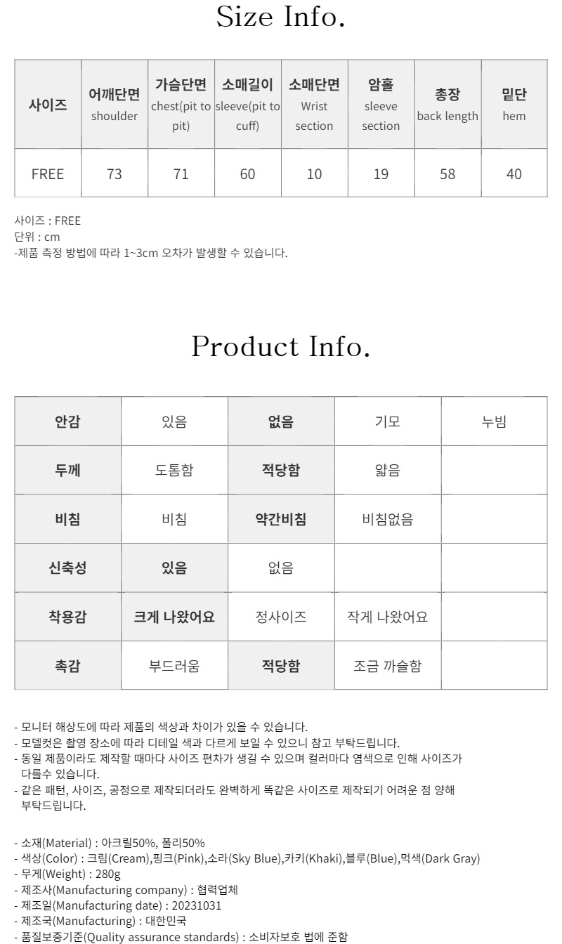 소라, 핑크 / Free 사이즈 착용했습니다^^