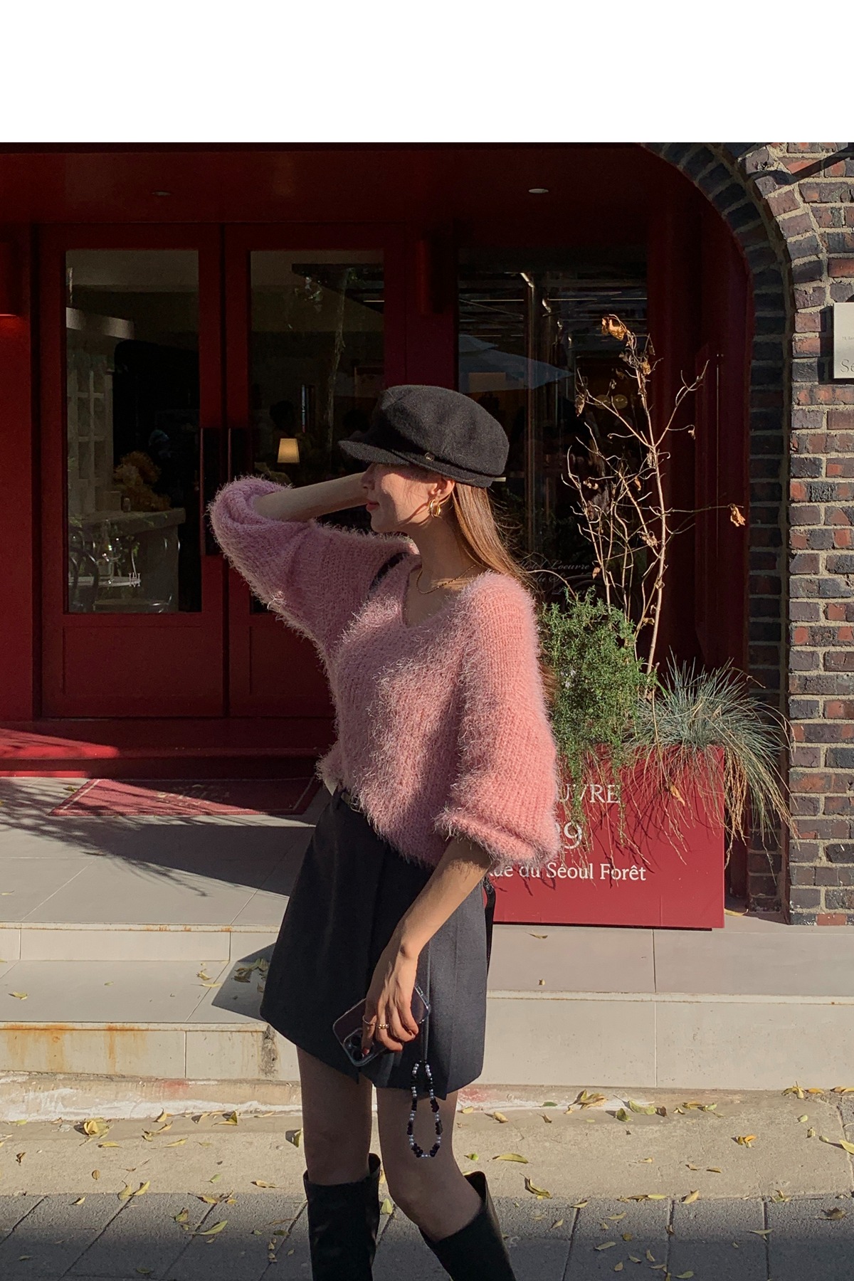 브이넥니트 부클니트 루즈핏 솔잎 러블리 니트티