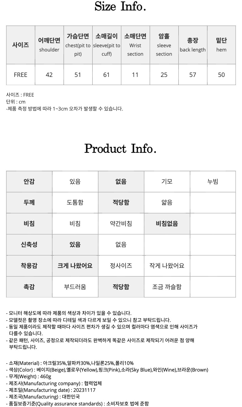 - 상품 하자, 오배송의 경우 수령일로부터 7일 이내 고객센터 접수 후 교환∙반품이 가능합니다. (교환/반품비 무료)