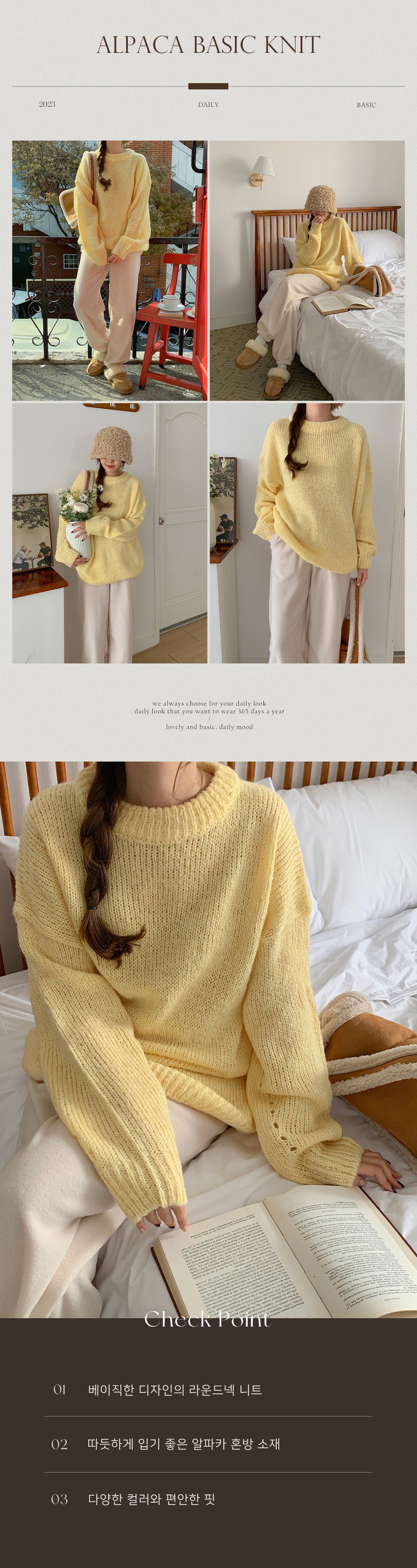 알파카니트 무지니트 라운드 베이직 기본 니트티