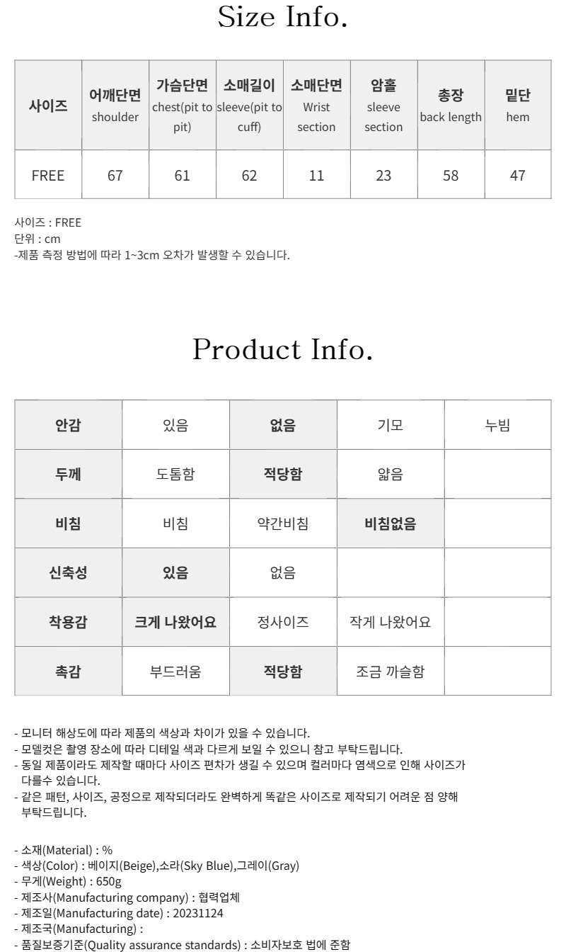 - 상품 하자, 오배송의 경우 수령일로부터 7일 이내 고객센터 접수 후 교환∙반품이 가능합니다. (교환/반품비 무료)