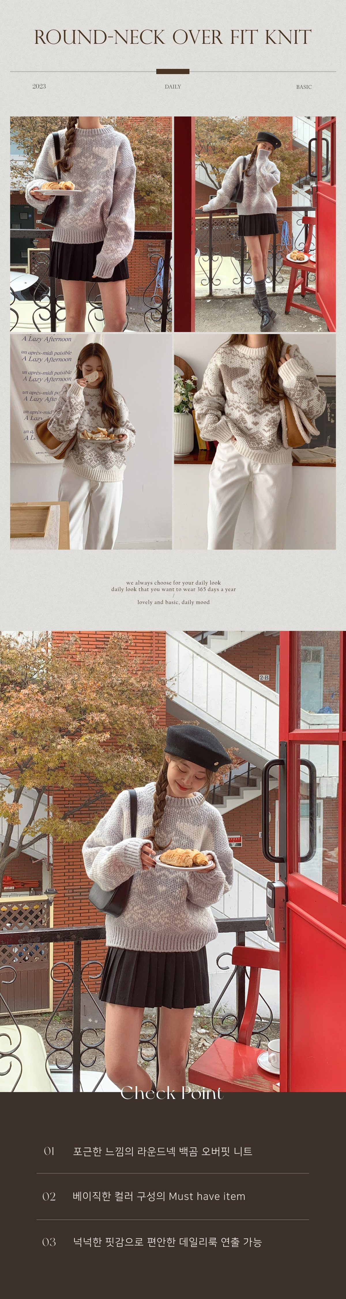 오버핏니트 라운드넥 백곰 눈꽃 러블리 니트티