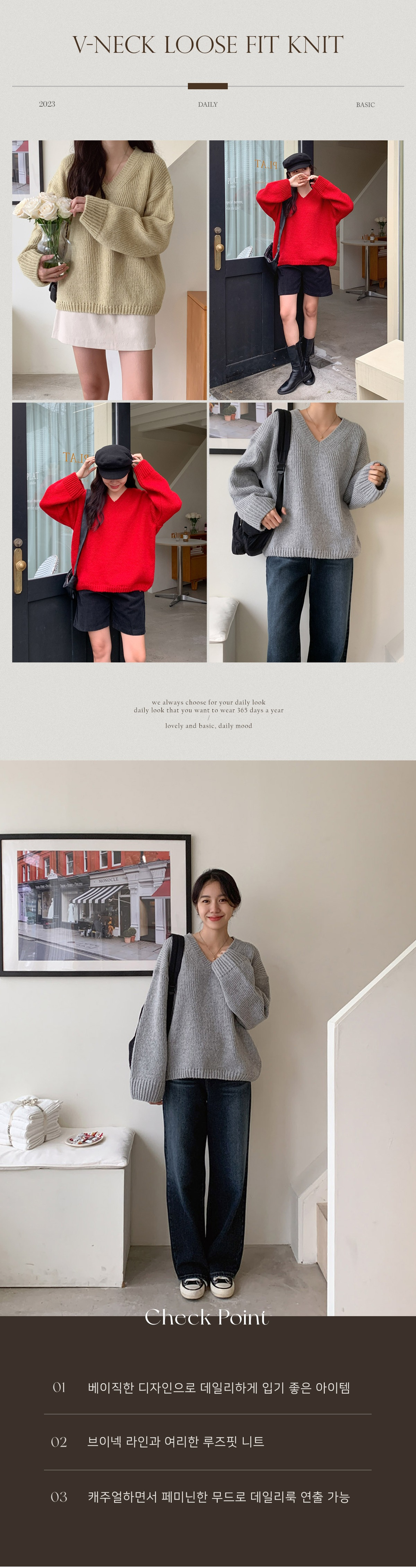 브이넥 라인과 여리한 루즈핏으로 캐주얼하면서