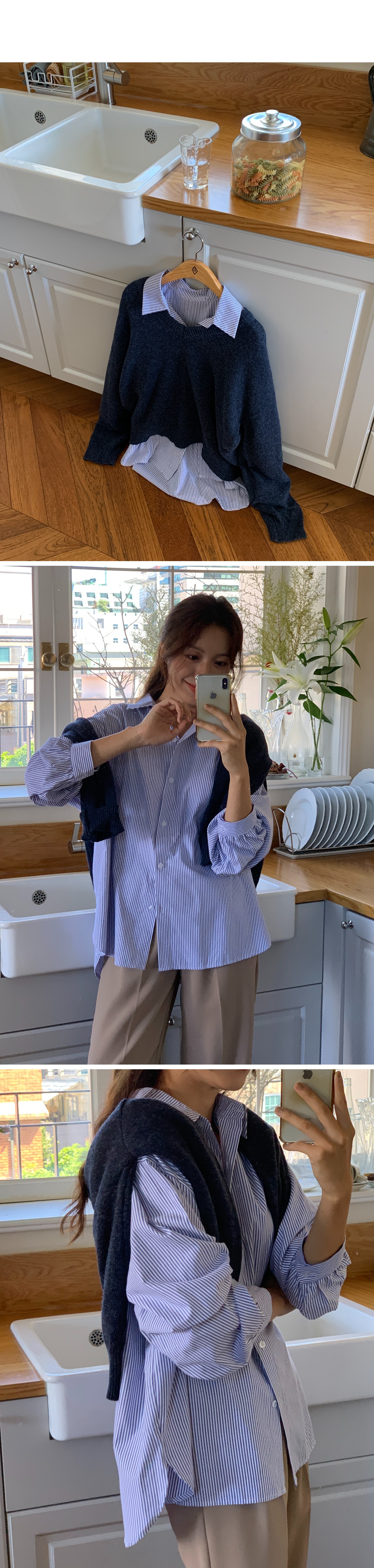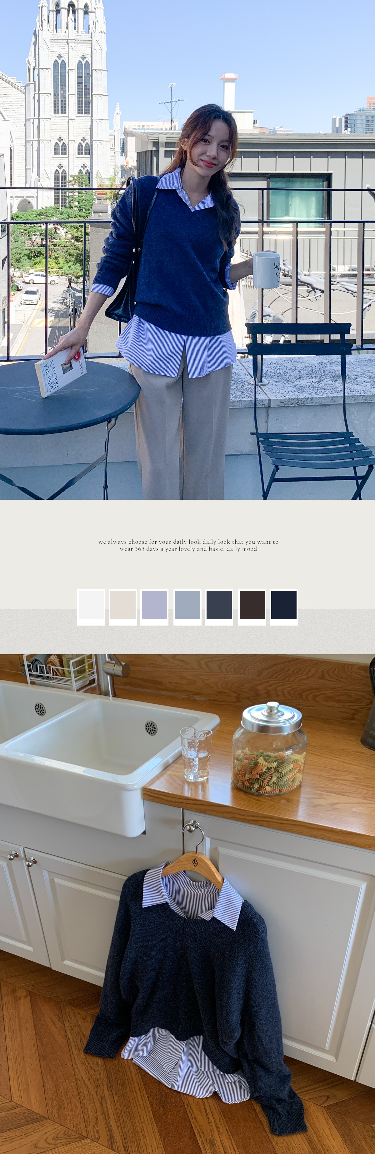 브이넥니트 가을겨울 루즈핏 레이어드 긴팔 니트티