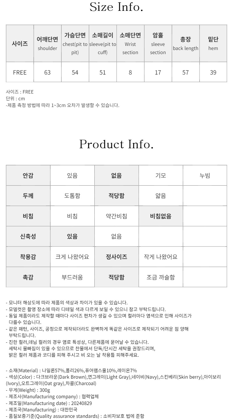 - 상품 하자, 오배송의 경우 수령일로부터 7일 이내 고객센터 접수 후 교환∙반품이 가능합니다. (교환/반품비 무료)