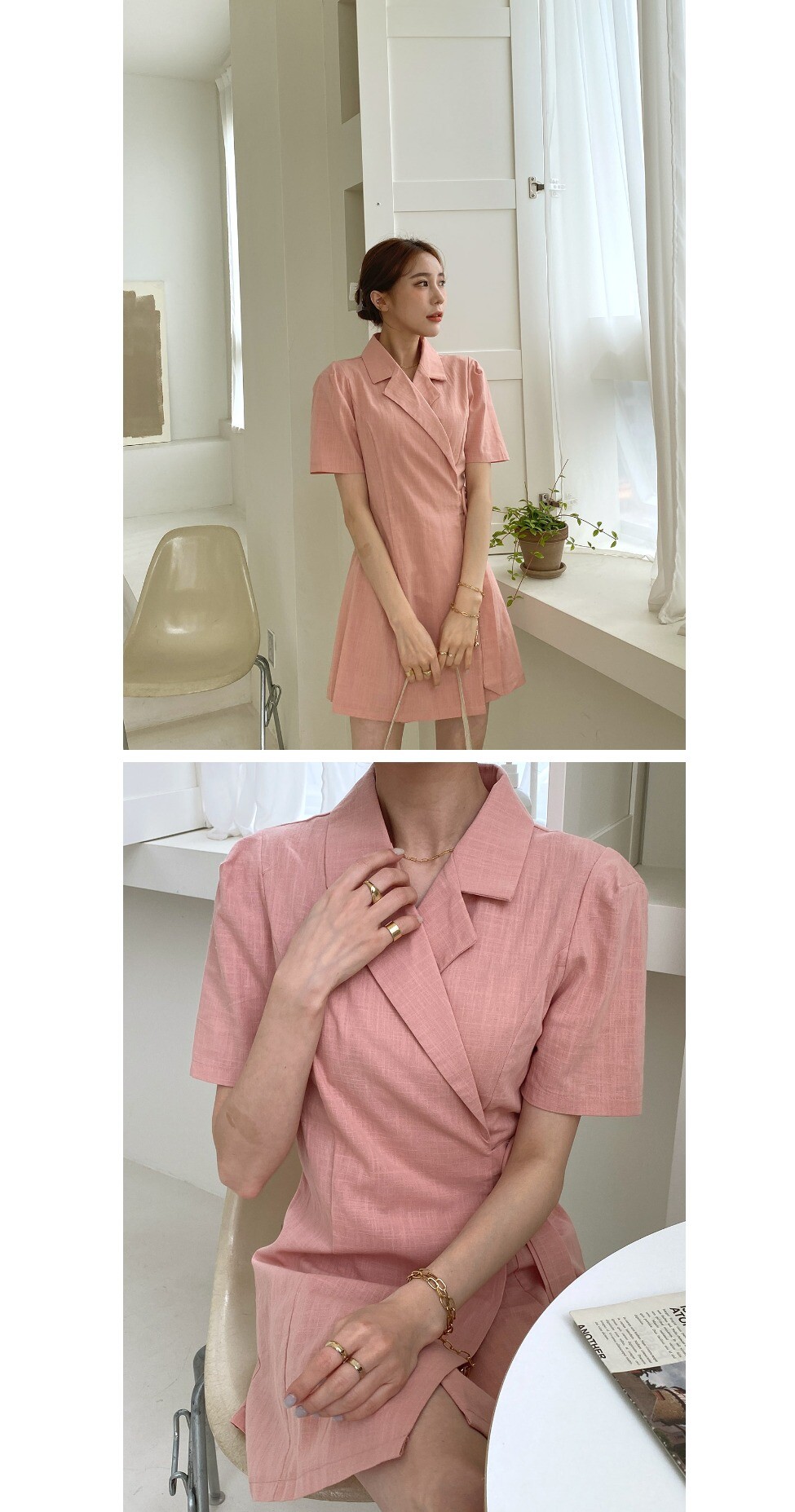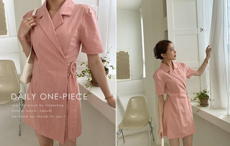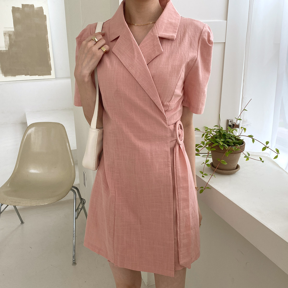 여자 베이직 슬림 봄 여름 캐주얼 기본 데일리 하객 린넨 반팔 자켓 원피스