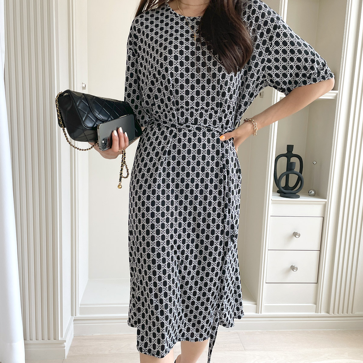스트랩 패턴 반팔 롱 원피스 패턴 봄 여름 땡땡이 사각 영문 치도리 컬러