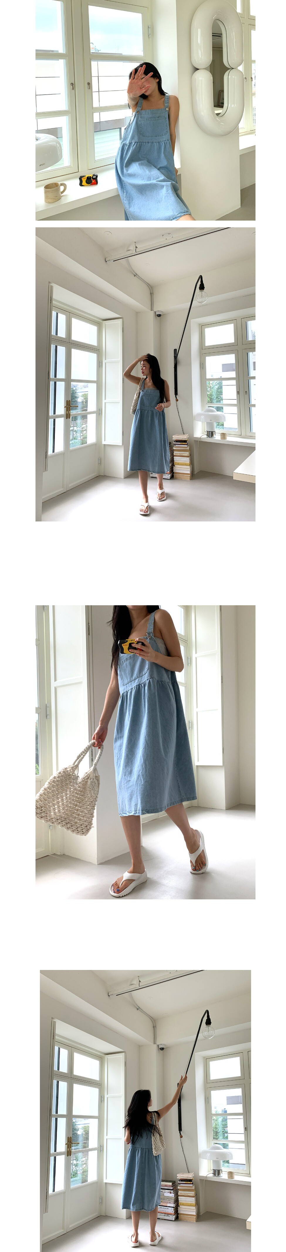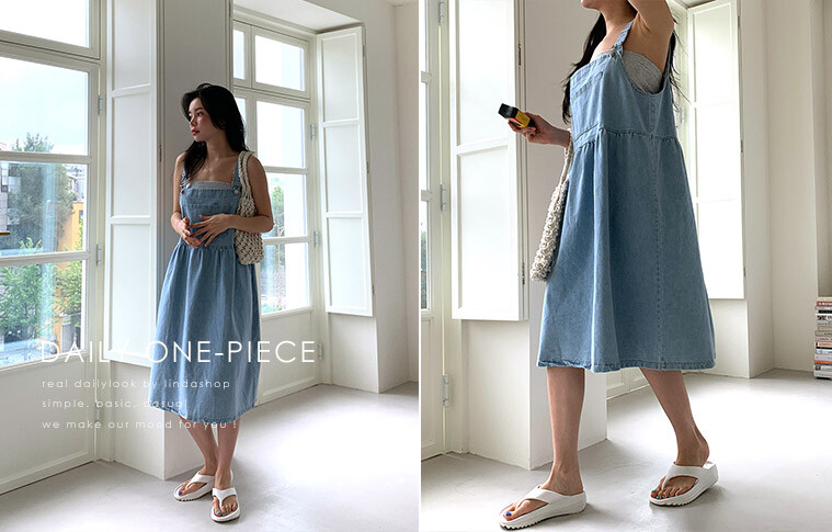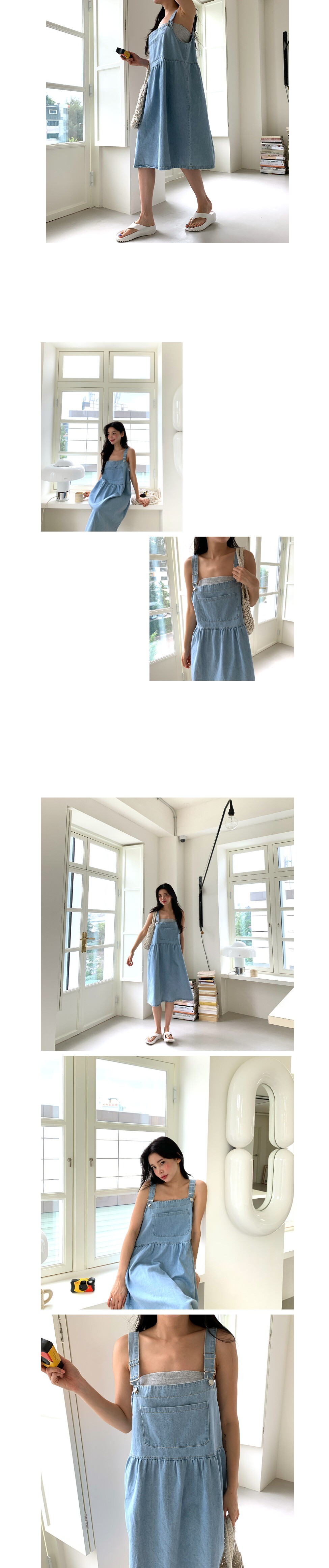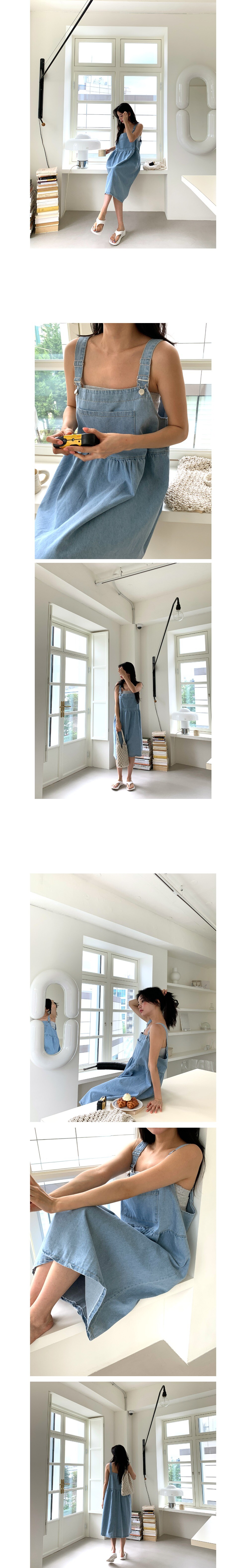여성 데님 멜빵 포켓 롱 원피스 봄 여름 가을 연청 민소매 나시 바스락원피스