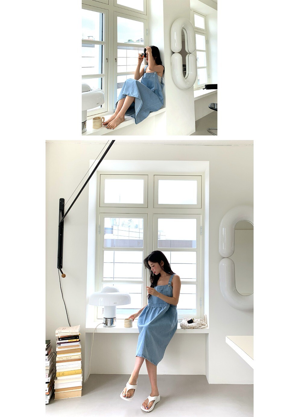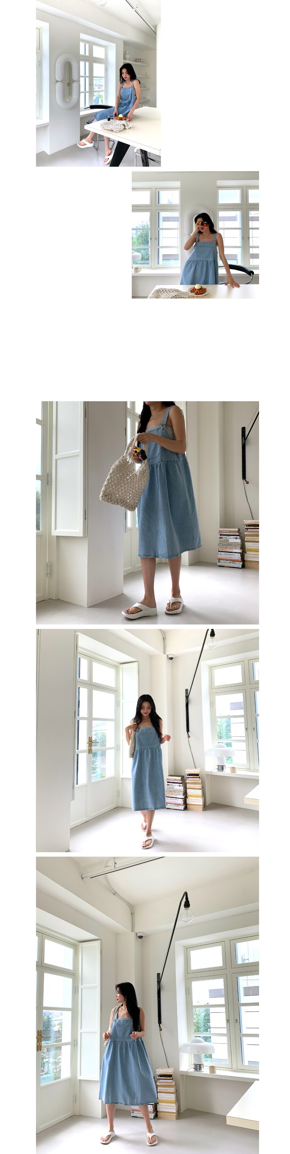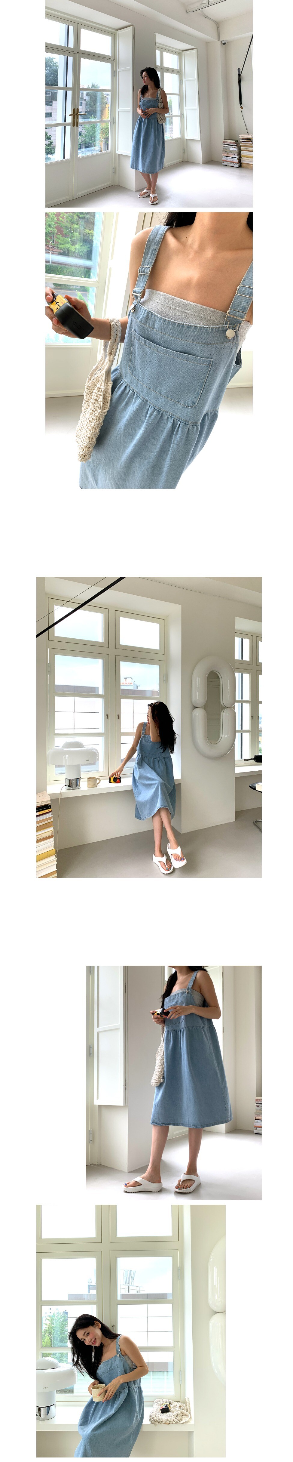 여성 데님 멜빵 포켓 롱 원피스 봄 여름 가을 연청 민소매 나시 바스락원피스