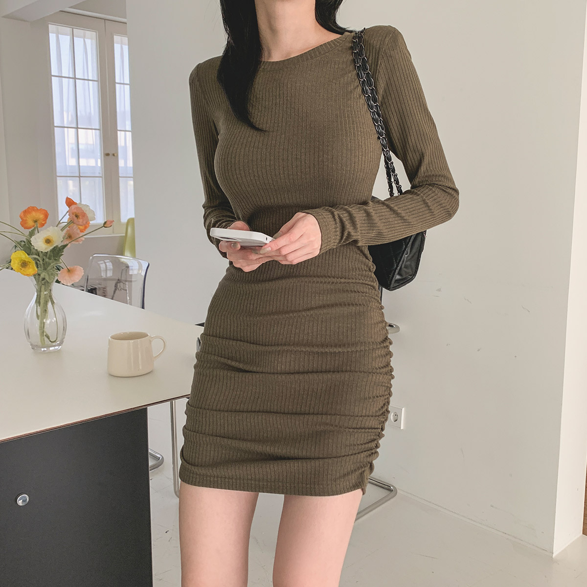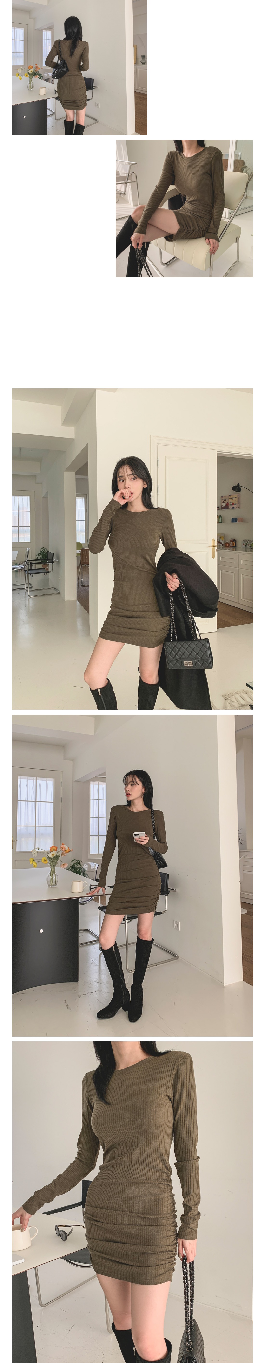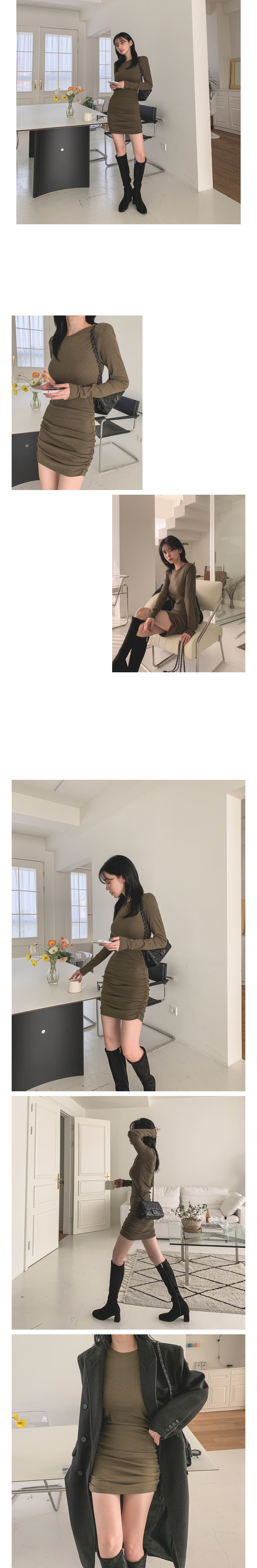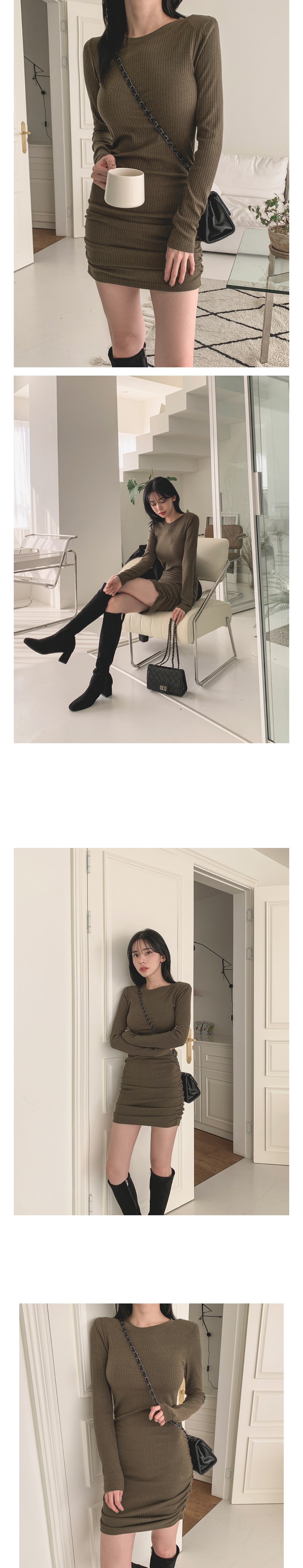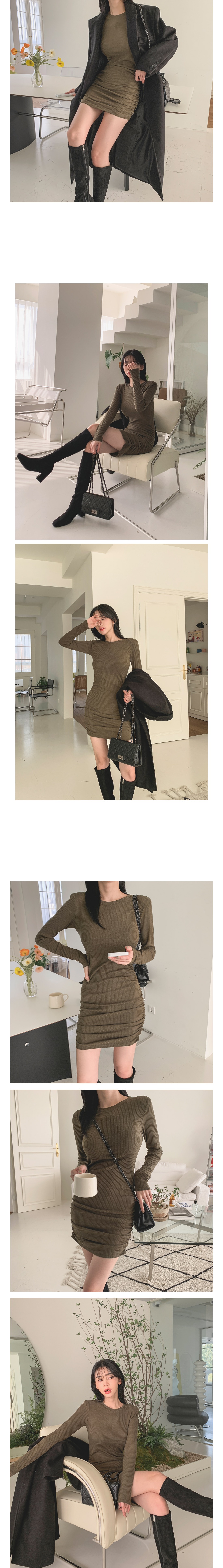 슬림 글램 골지 셔링 긴팔 미니 원피스 3color 주름 오피스 하객 데이트 룩