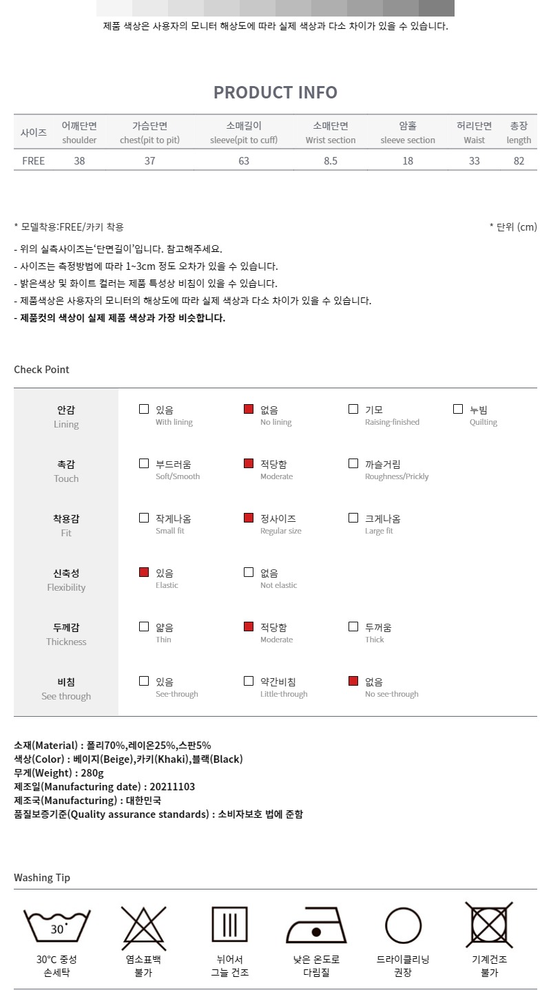 카키 / FREE 사이즈 착용했습니다^^