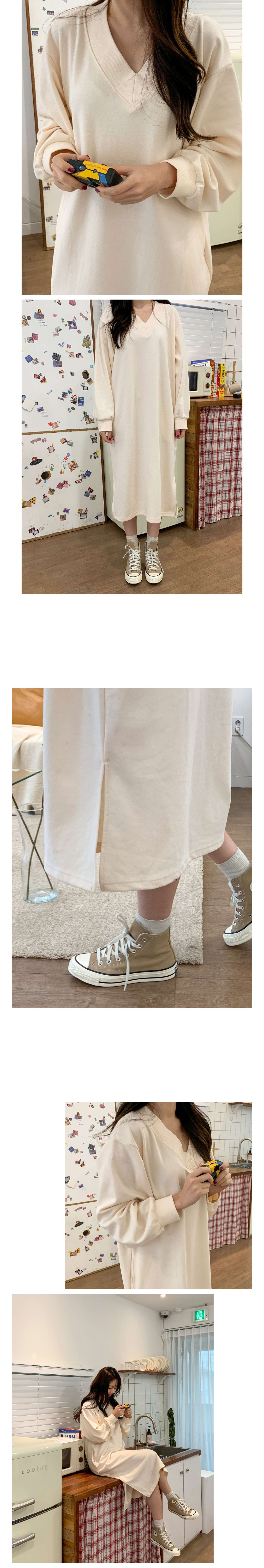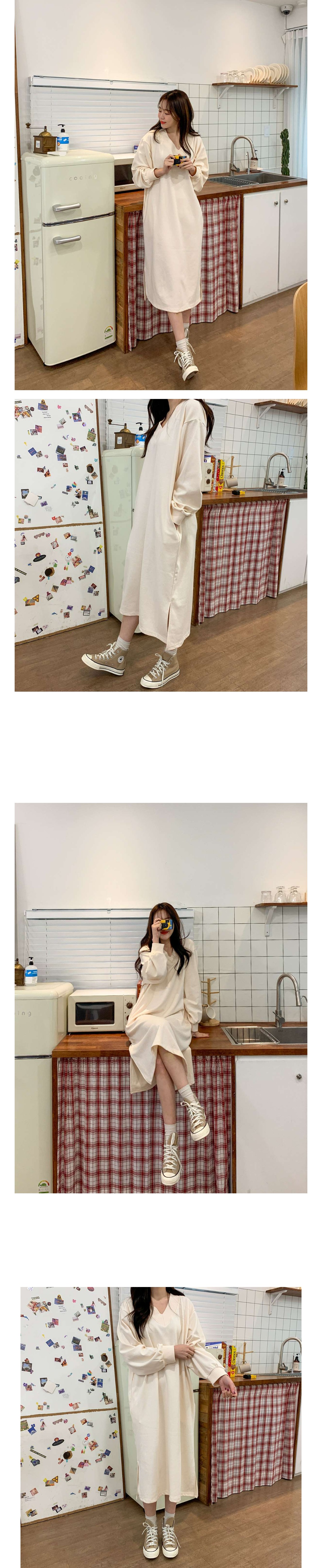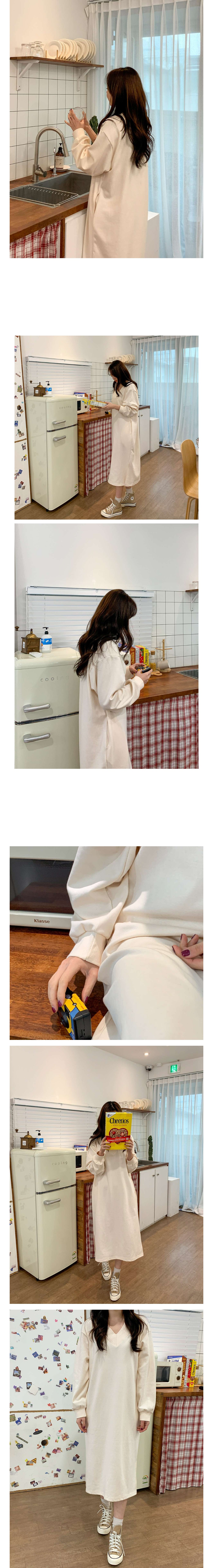브이넥 박시 롱 원피스입니다.