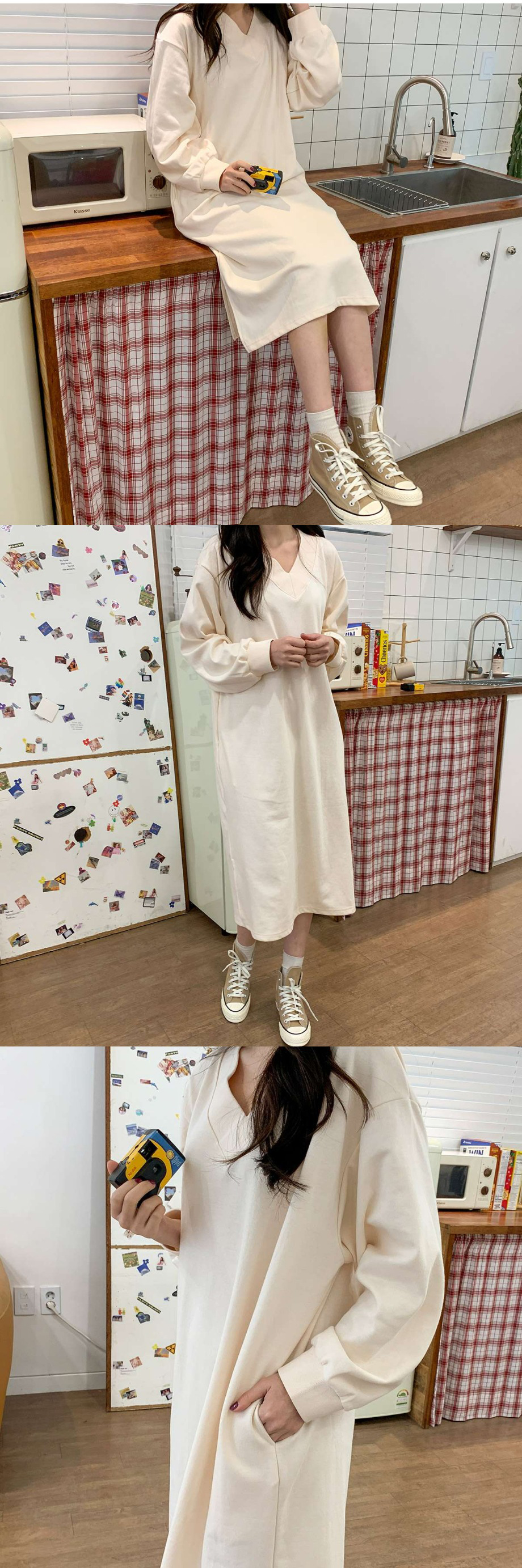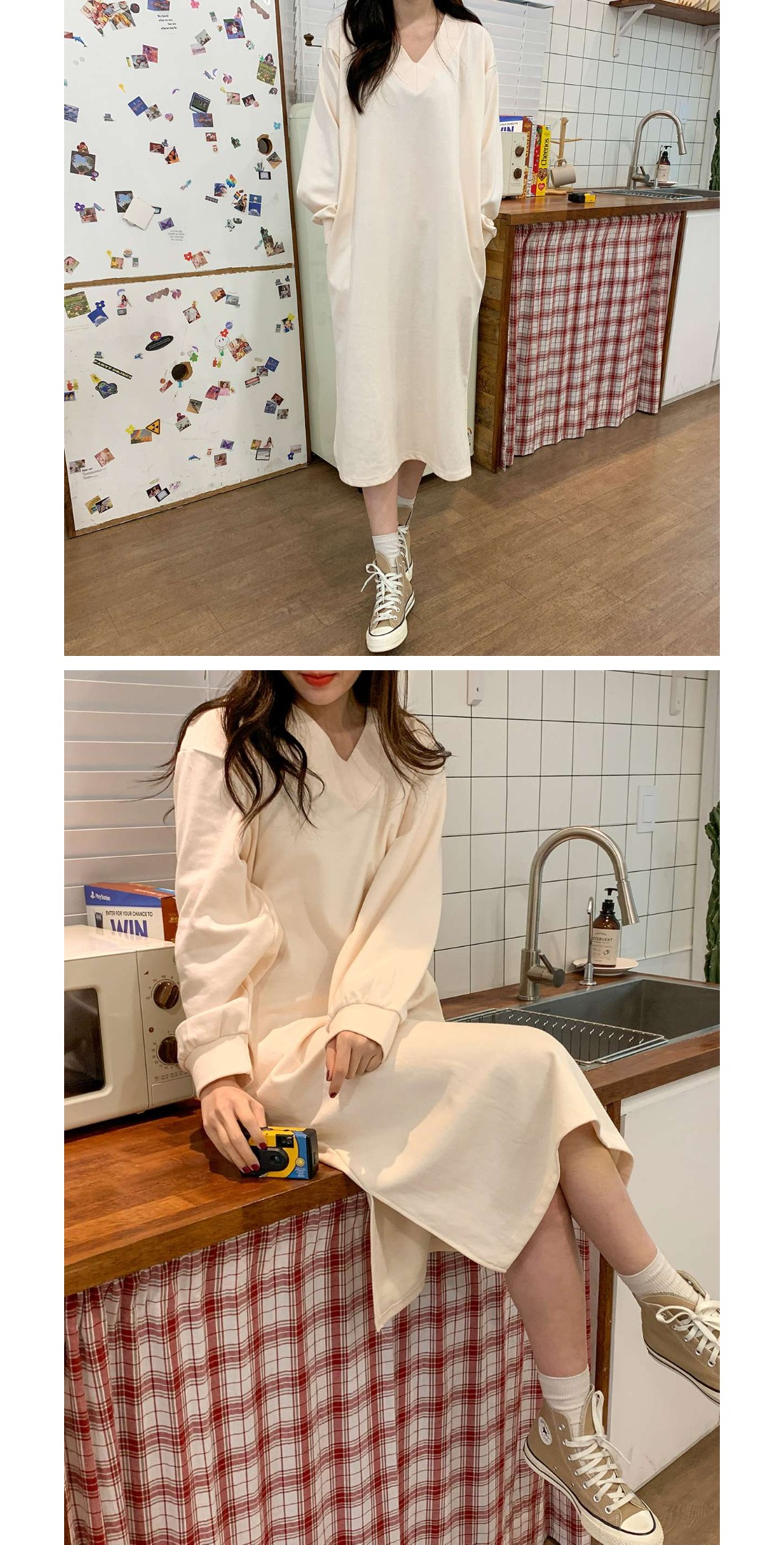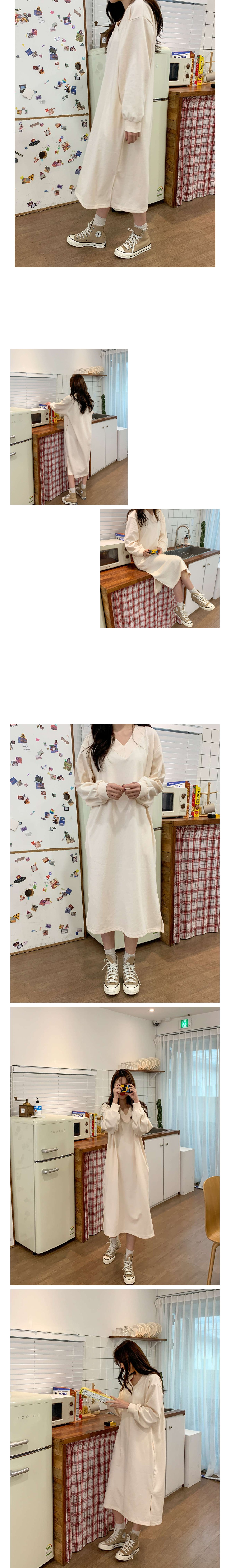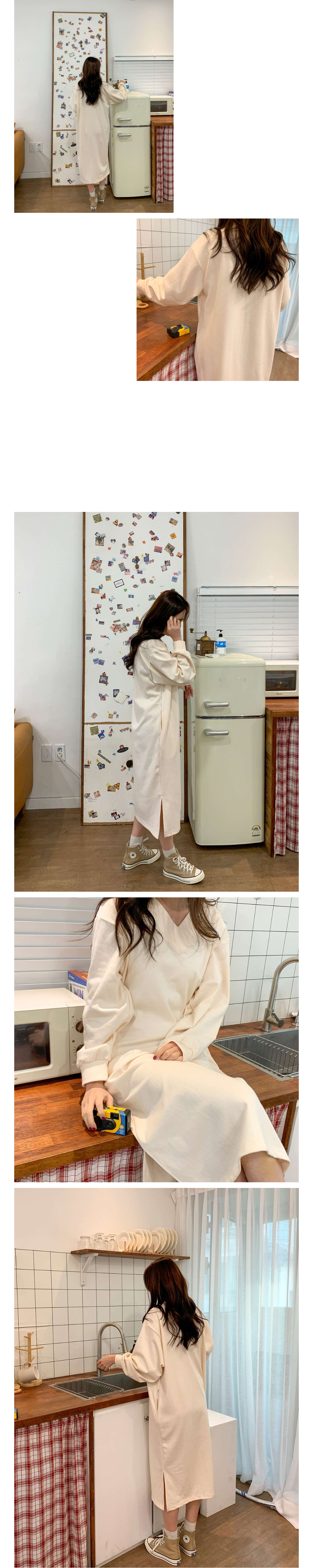 브이넥 박시 롱 원피스입니다.