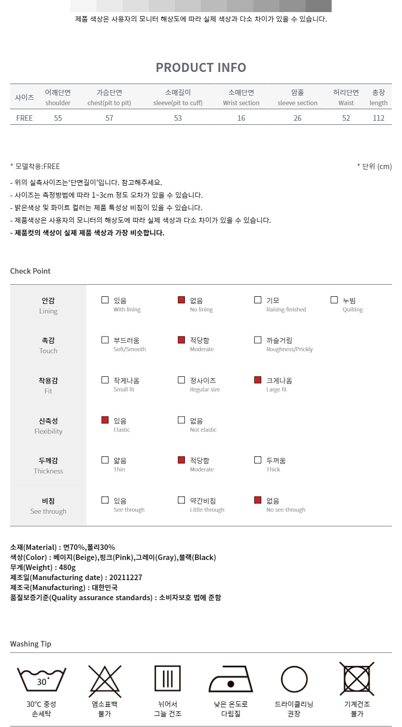 베이지 / FREE 사이즈 착용했습니다^^