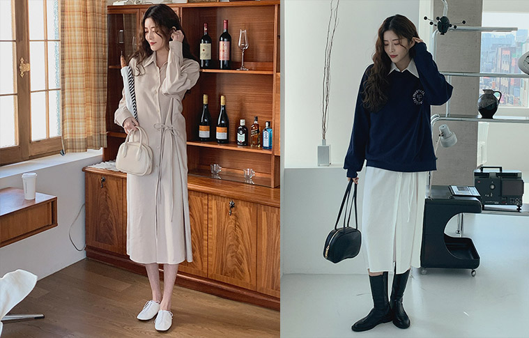 셔츠원피스 여성 루즈핏 봄 레이어드 블랙 베이지 아이보리 롱 원피스