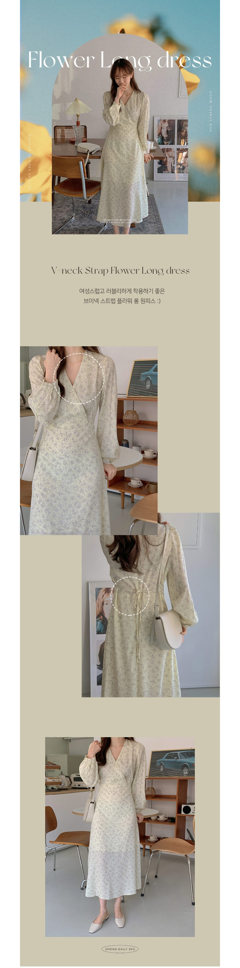 꽃무늬원피스 브이넥 봄 플라워 러블리 린 롱 원피스