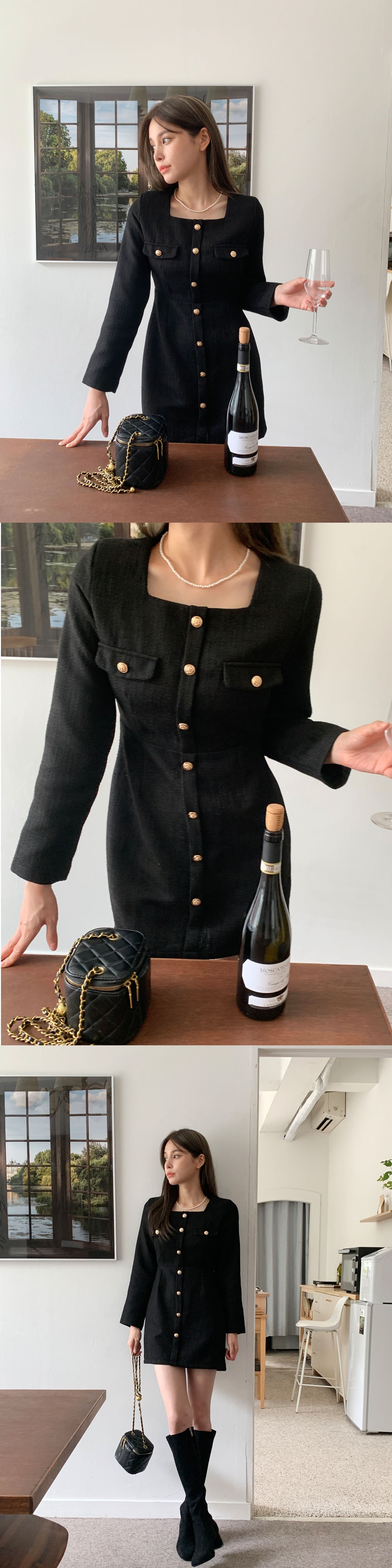 가을 트위드 러블리 하객 미니 원피스 린 바스락