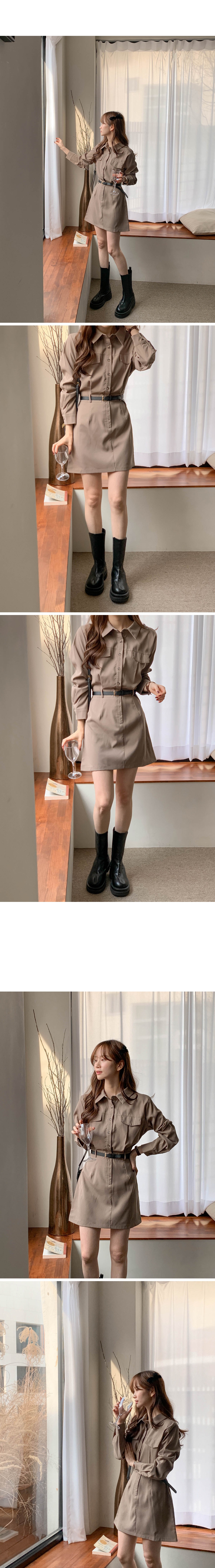 셔츠 벨트 미니원피스 카라 브라운 그레이 블랙 원피스