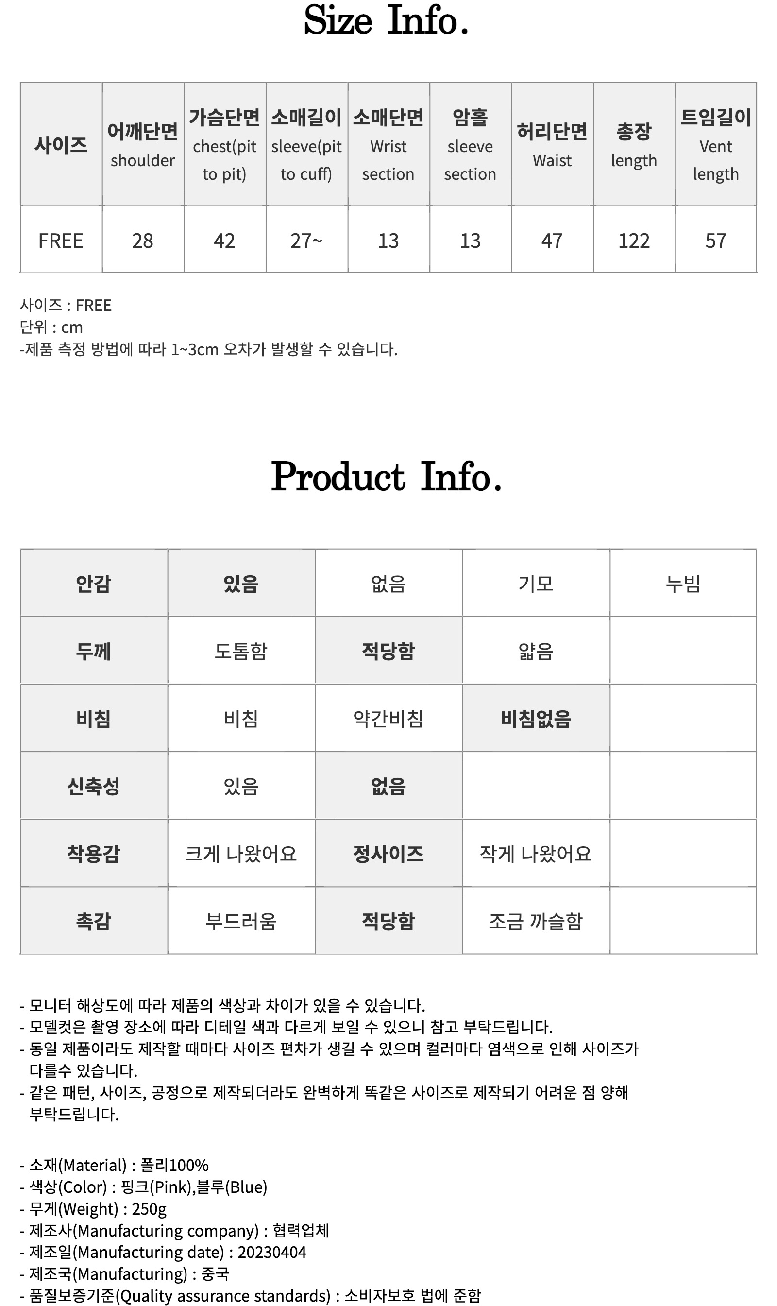 블루 / Free 사이즈 착용했습니다^^