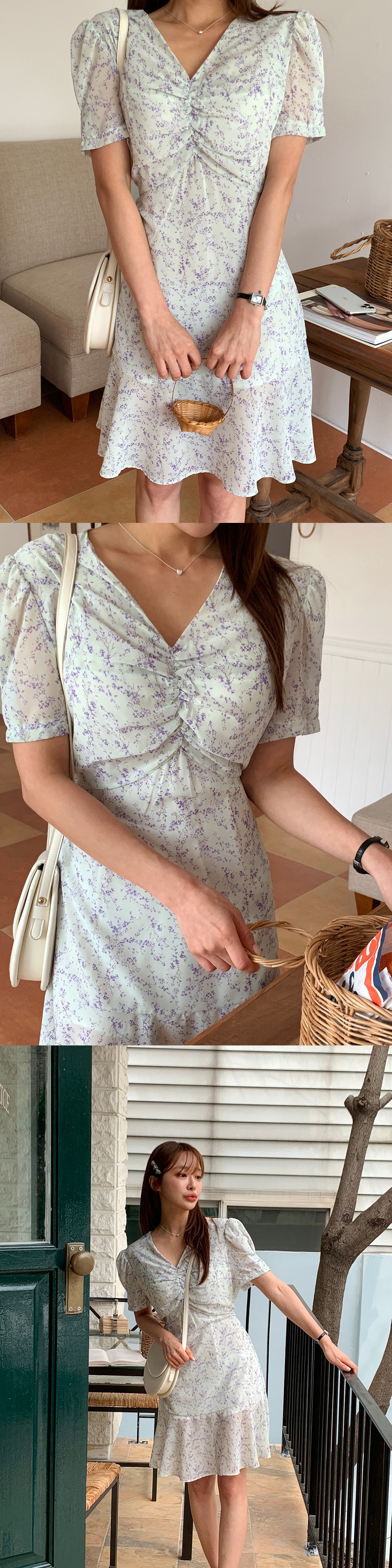 꽃무늬원피스 플라워원피스 셔링 린 바스락 바캉스 반팔 원피스
