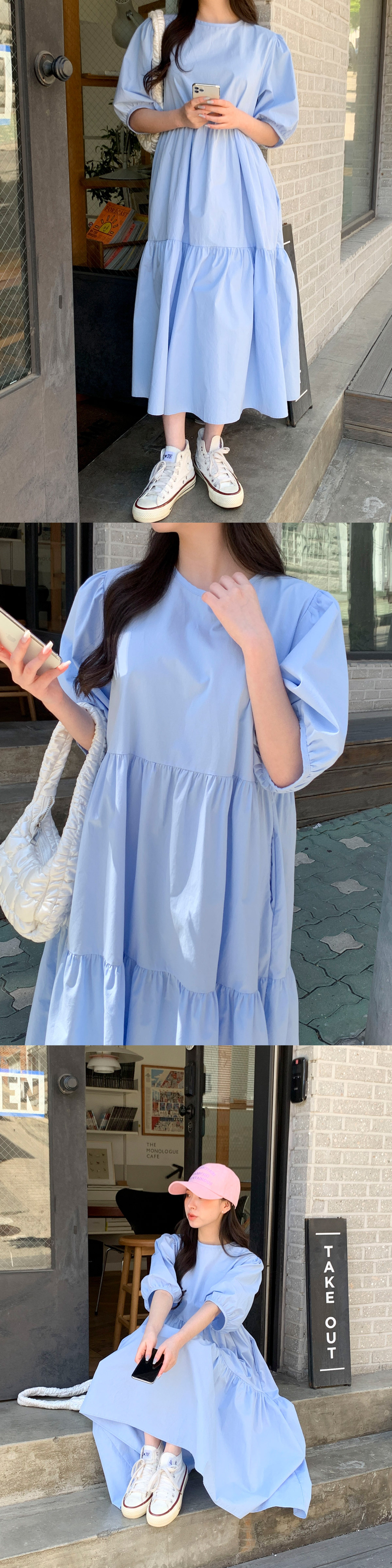 캉캉원피스 프릴 바캉스 휴양지 바스락 린 반팔 롱 원피스