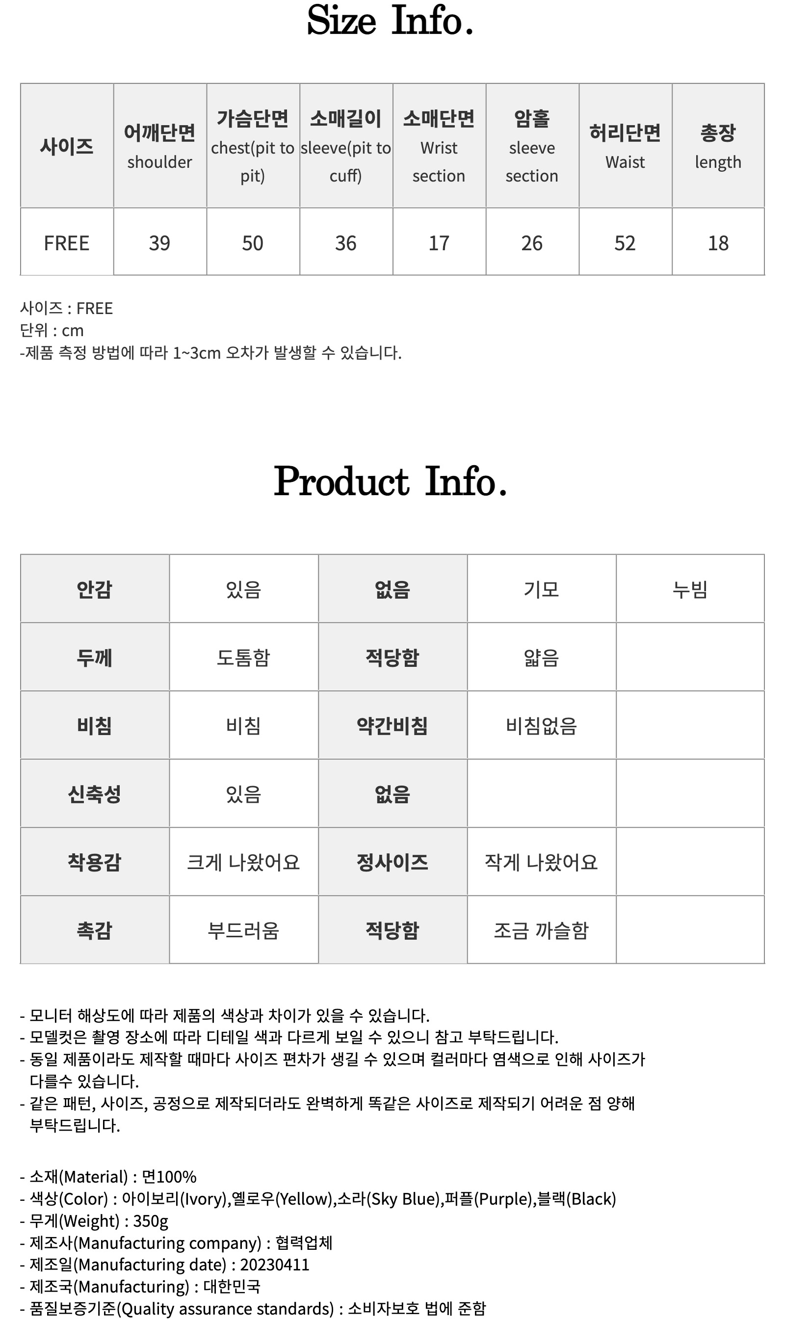 - 상품 하자, 오배송의 경우 수령일로부터 7일 이내 고객센터 접수 후 교환∙반품이 가능합니다. (교환/반품비 무료)