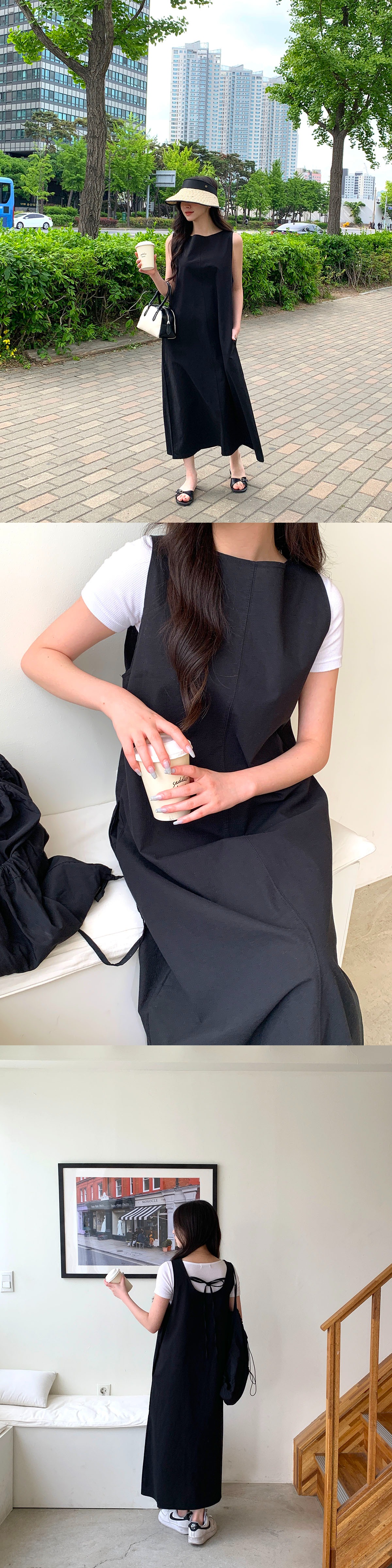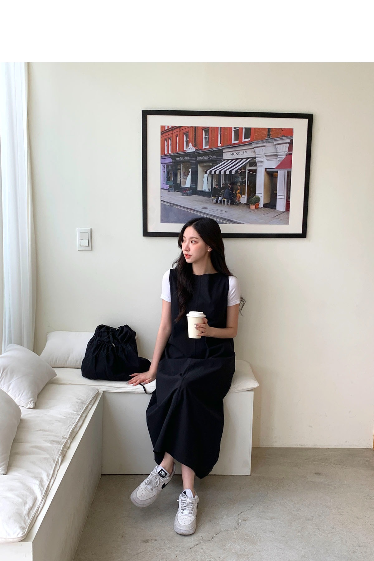 라운드넥 코튼 면 레이어드 민소매 나시 여름 롱 원피스