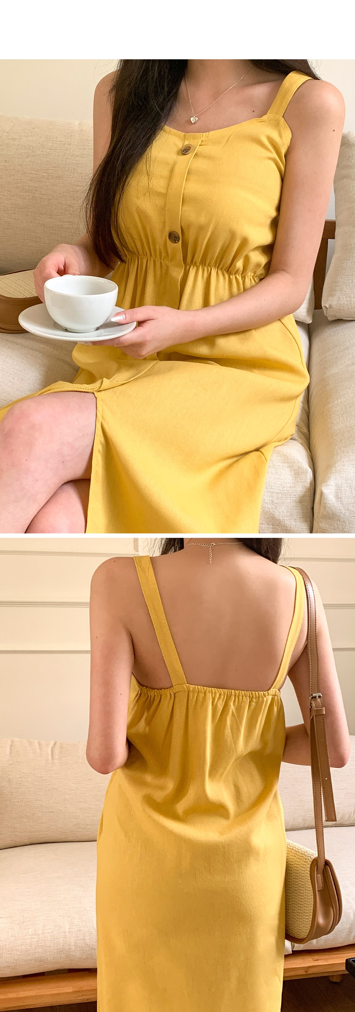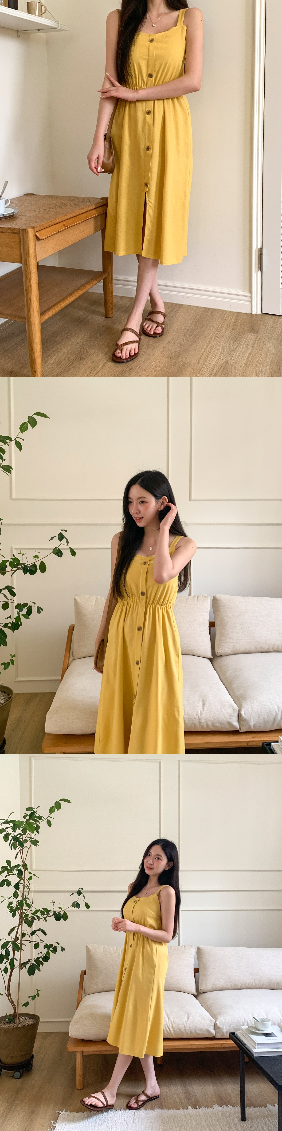 민소매원피스 스퀘어넥 밴딩 단추 나시 여름 롱 원피스