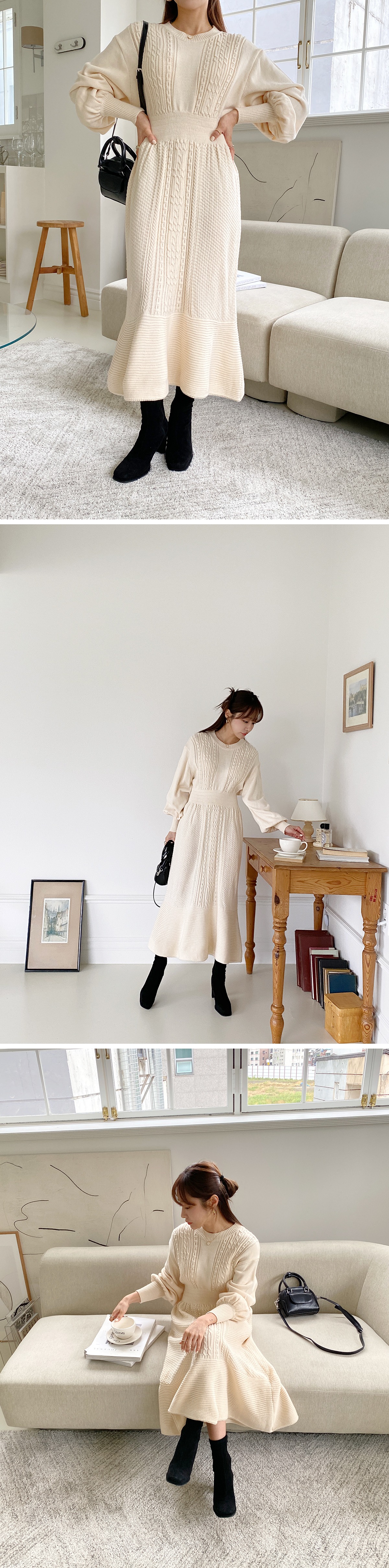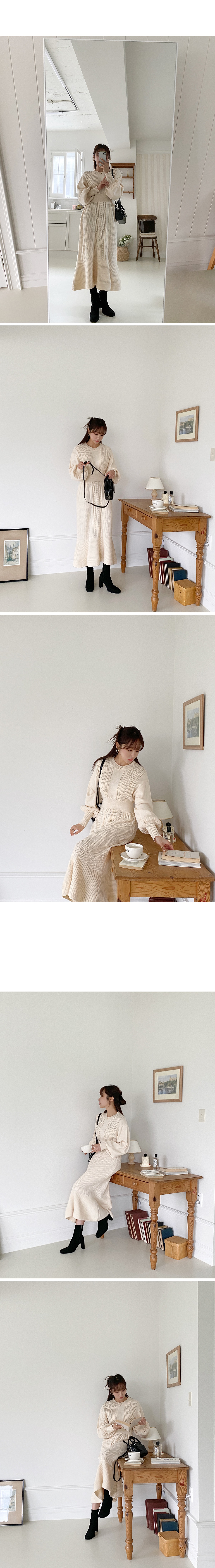 니트원피스 프릴원피스 꽈배기 라운드 롱 원피스
