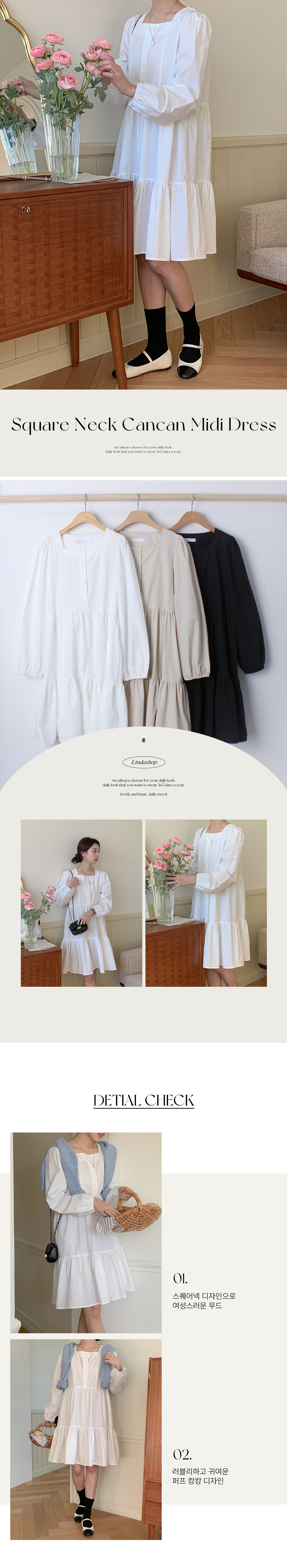 스퀘어넥원피스 캉캉원피스 반오픈 미디 원피스