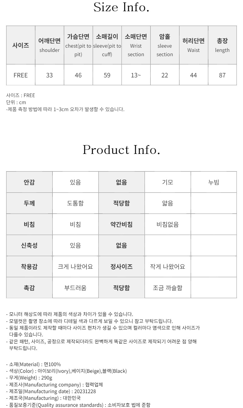 아이보리 / Free 사이즈 착용했습니다^^
