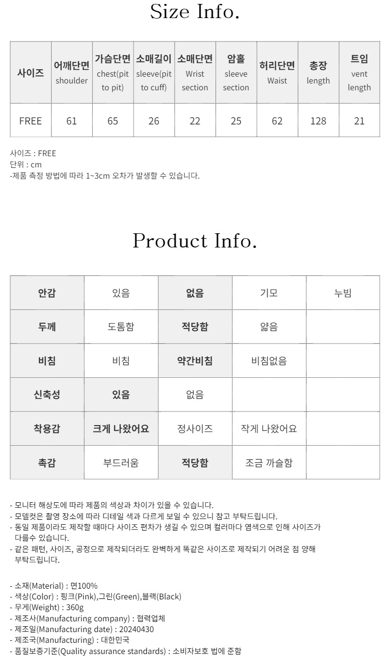 - 상품 하자, 오배송의 경우 수령일로부터 7일 이내 고객센터 접수 후 교환∙반품이 가능합니다. (교환/반품비 무료)