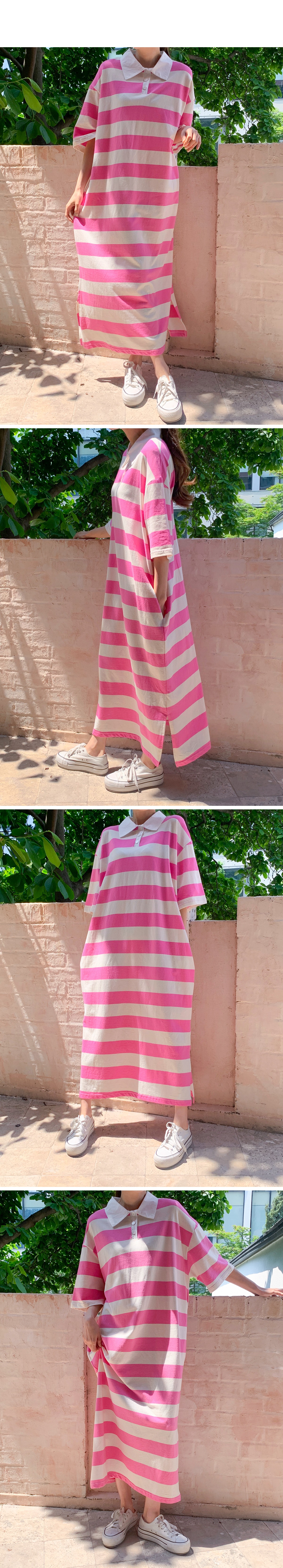 카라원피스 루즈핏 롱 여름 반팔 스트라이프원피스