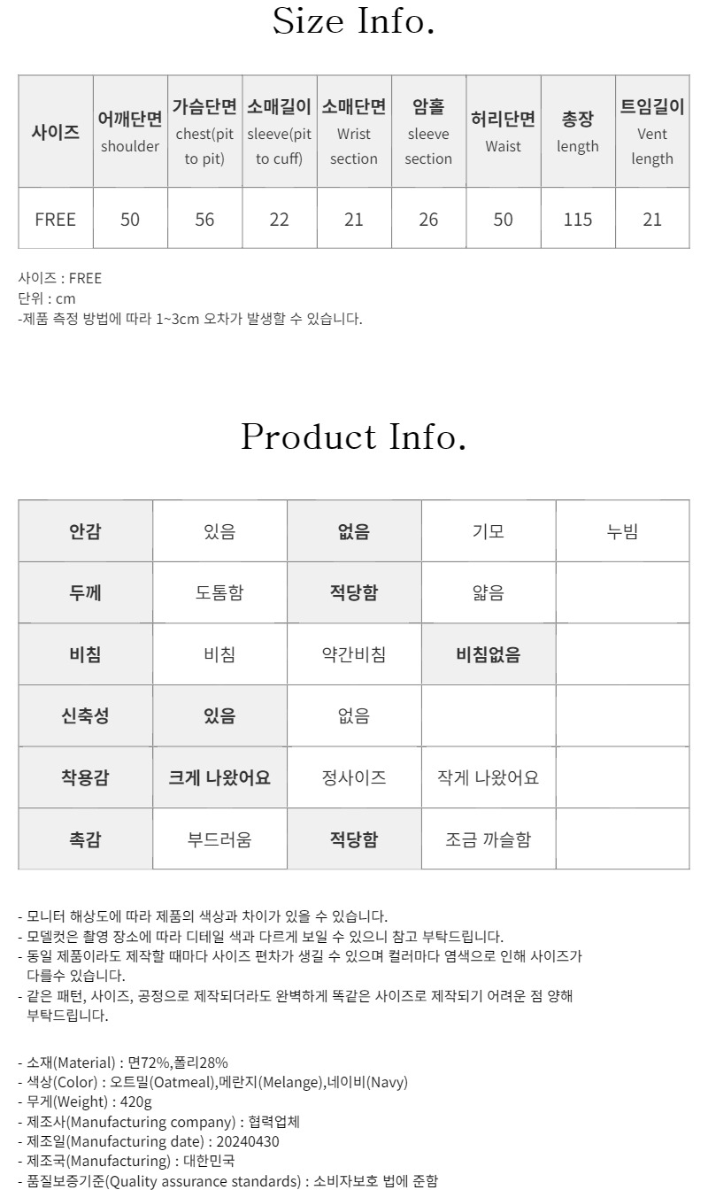 오트밀 / Free 사이즈 착용했습니다^^