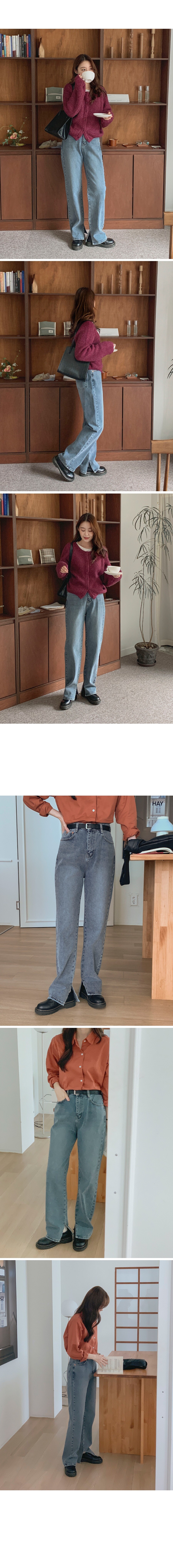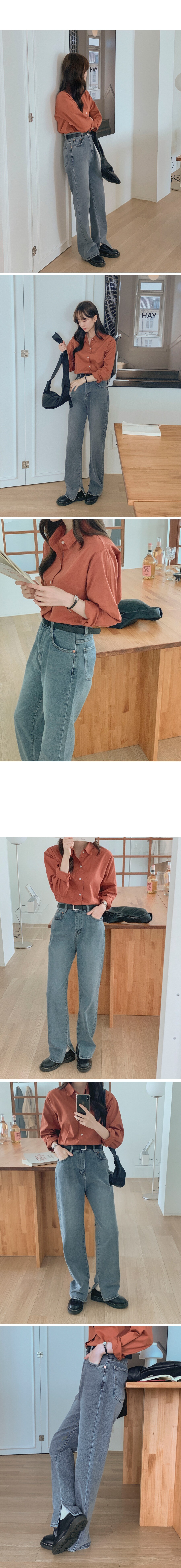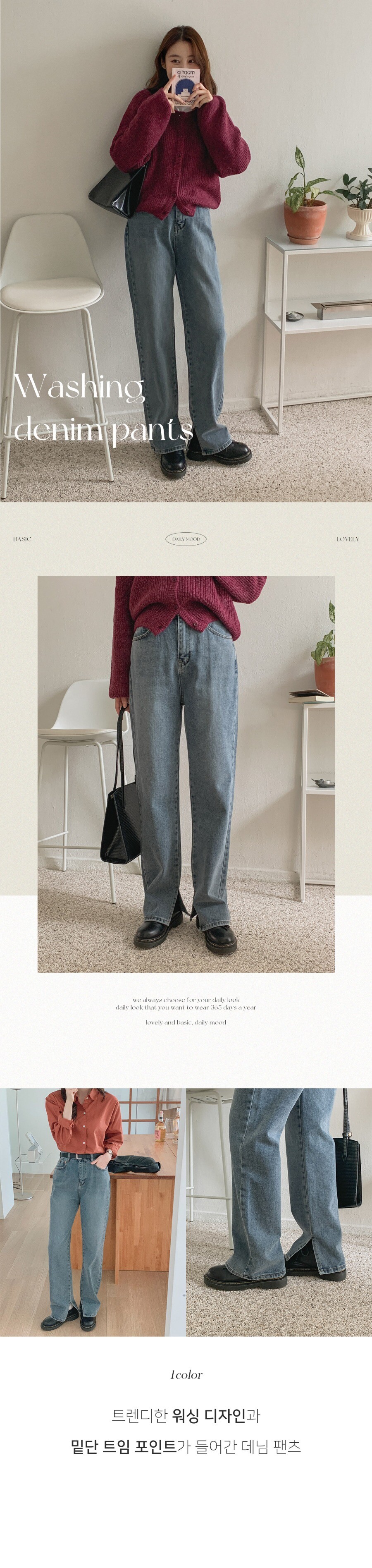 여성 트임 데님 일자 워싱 코튼 면 팬츠 청바지