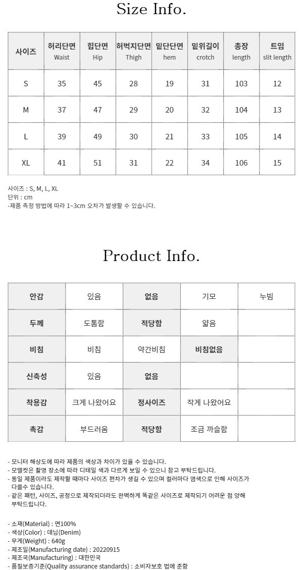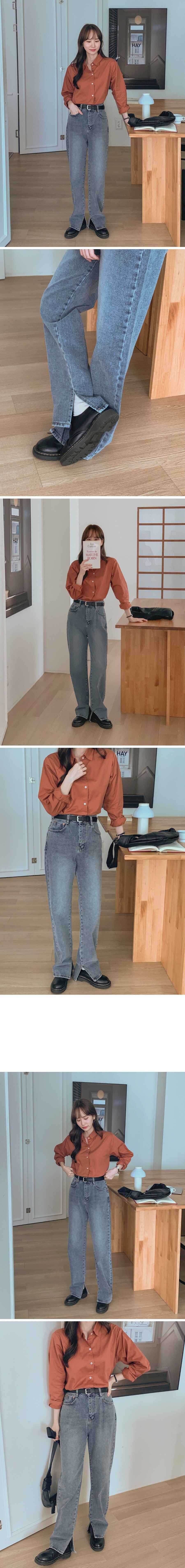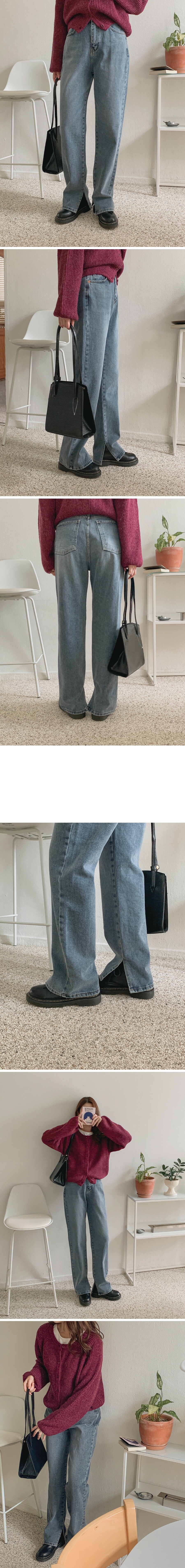 여성 트임 데님 일자 워싱 코튼 면 팬츠 청바지