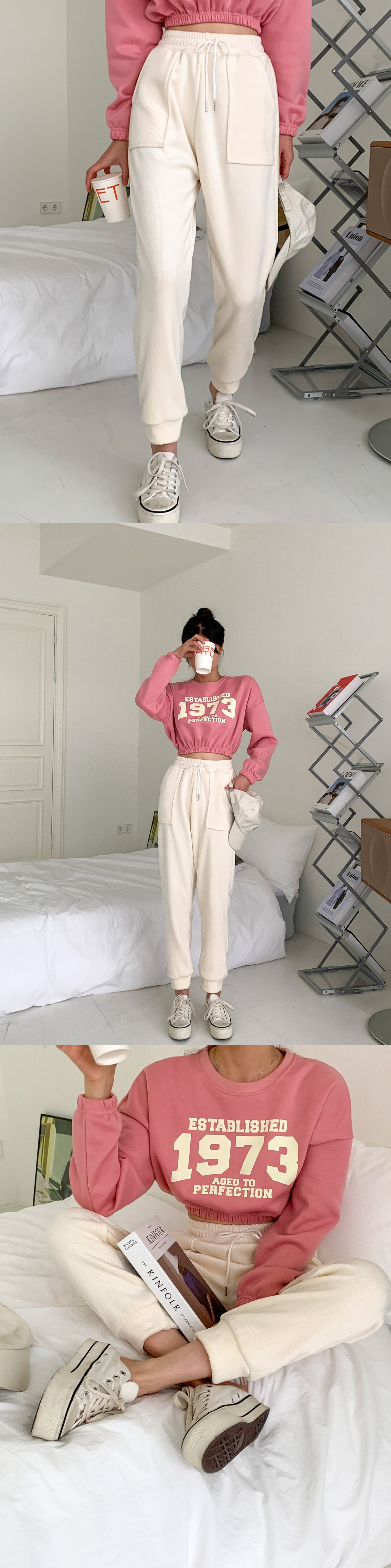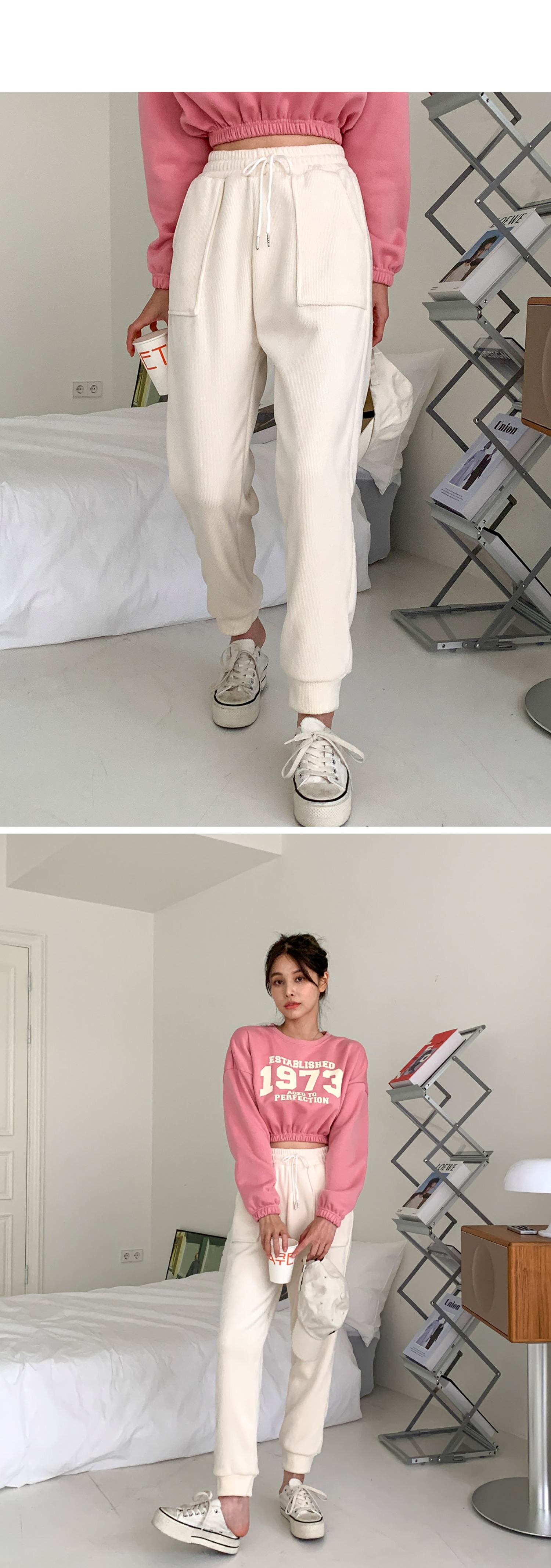 여성 기모 밴딩 골덴 조거 바지 팬츠 아이보리 브라운
