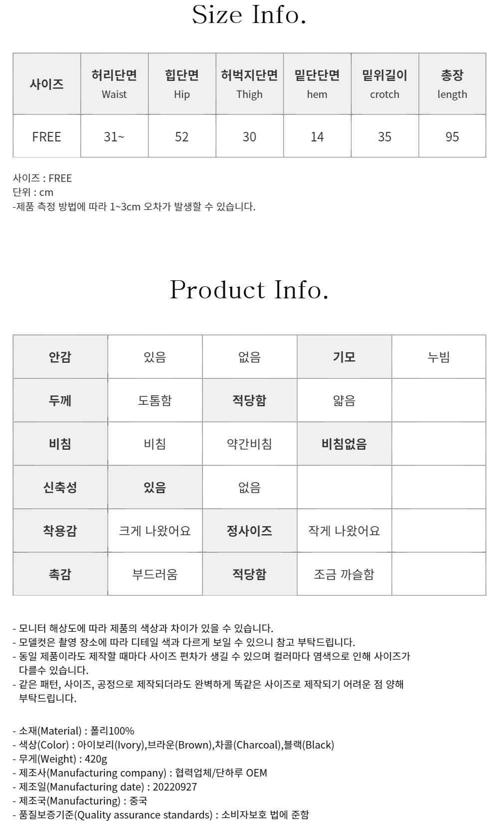 - 상품 하자, 오배송의 경우 수령일로부터 7일 이내 고객센터 접수 후 교환∙반품이 가능합니다. (교환/반품비 무료)