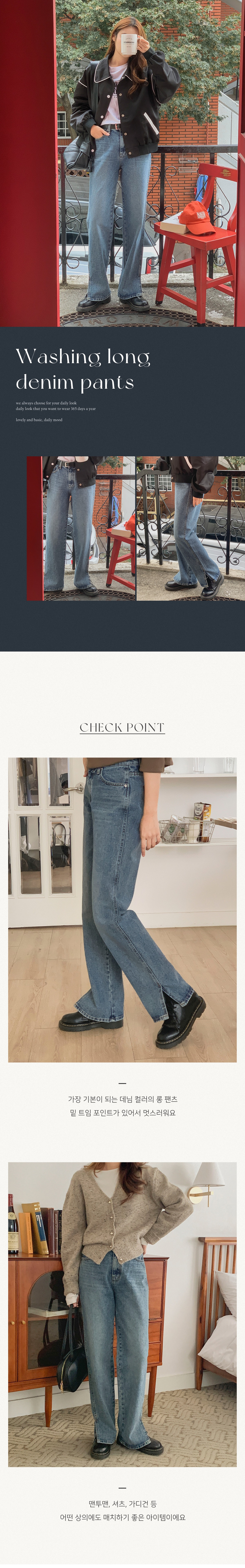 여성 트임 일자 워싱 코튼 면 데님 팬츠 청바지