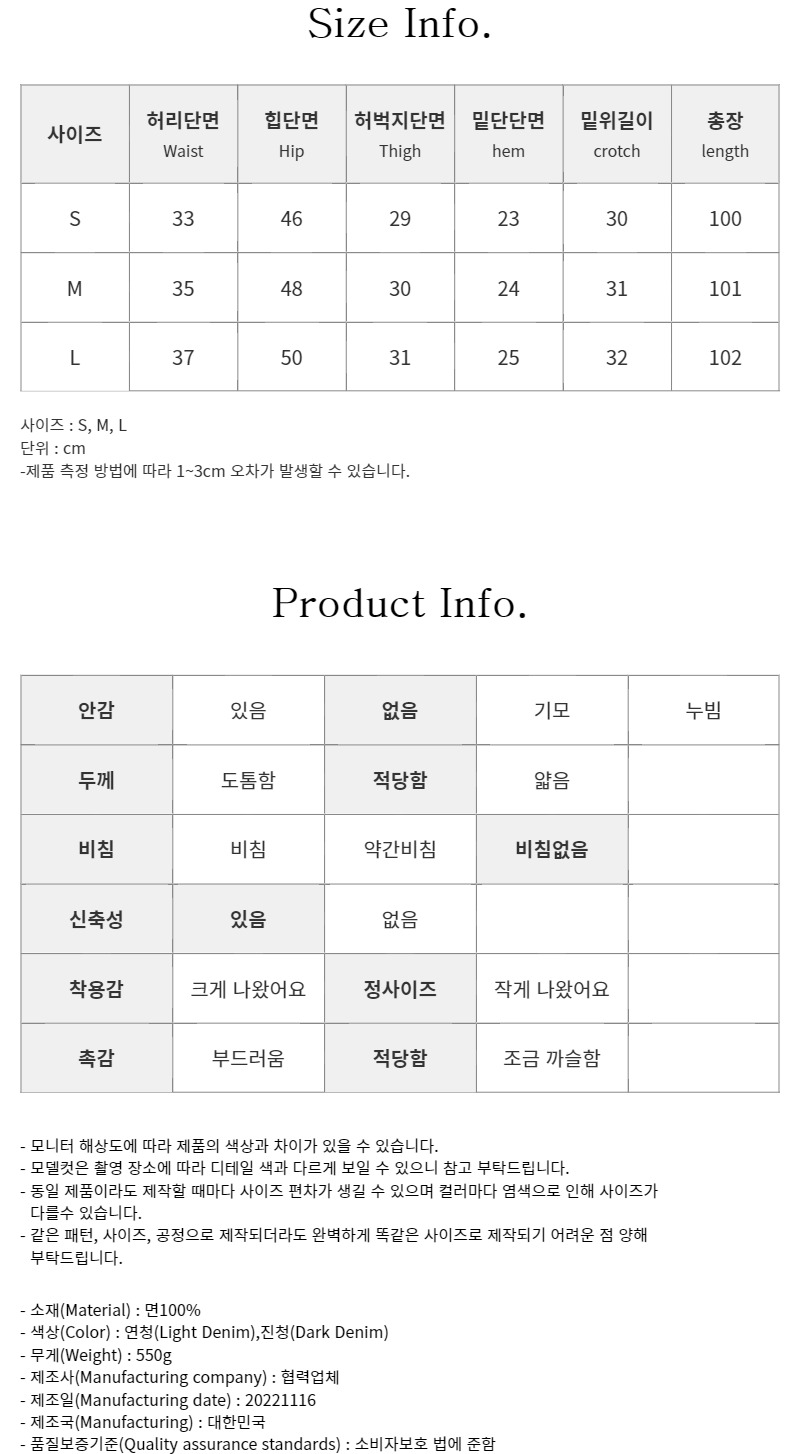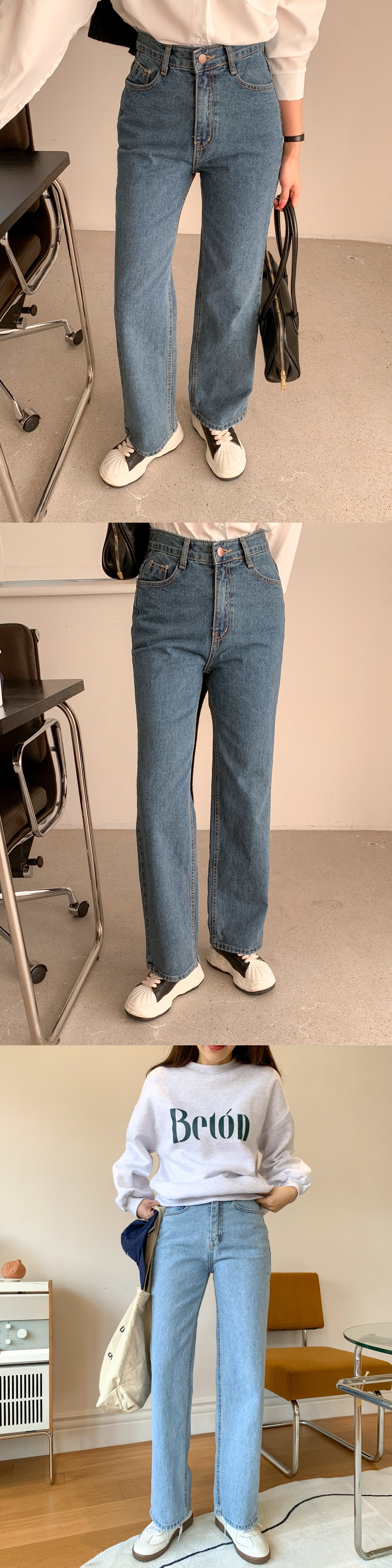 일자 롱 팬츠 연청 진청 면 데님 청바지