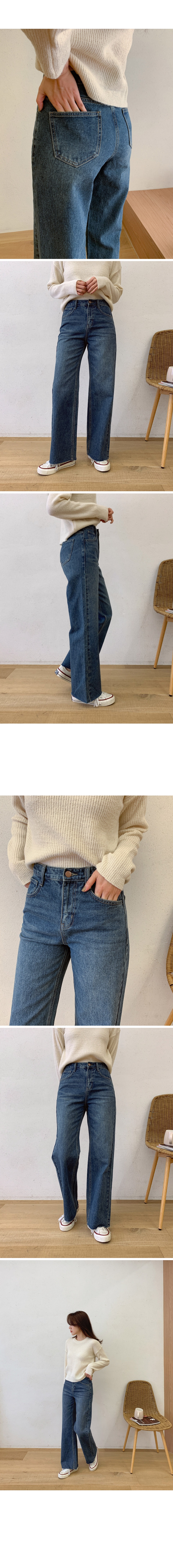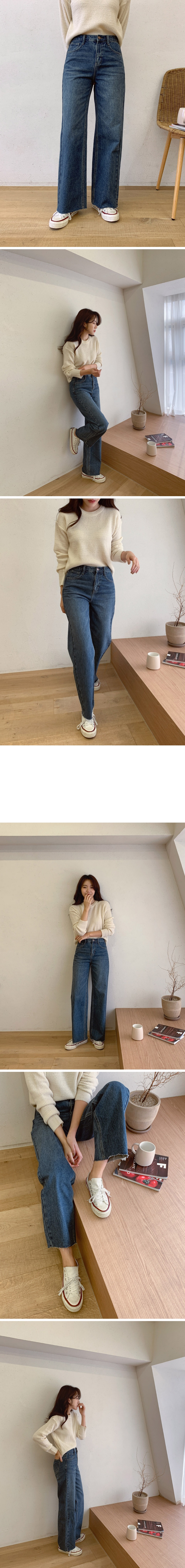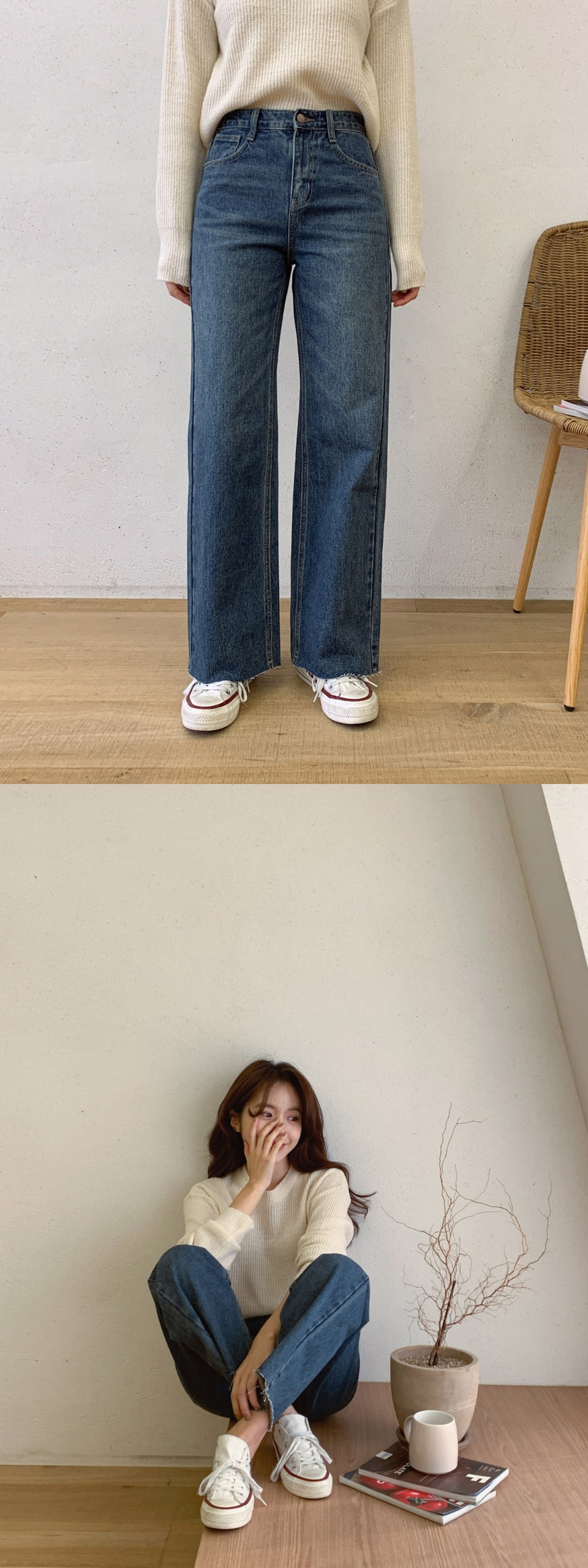 워싱 컷팅 와이드팬츠 빈티지 데님 일자 청바지