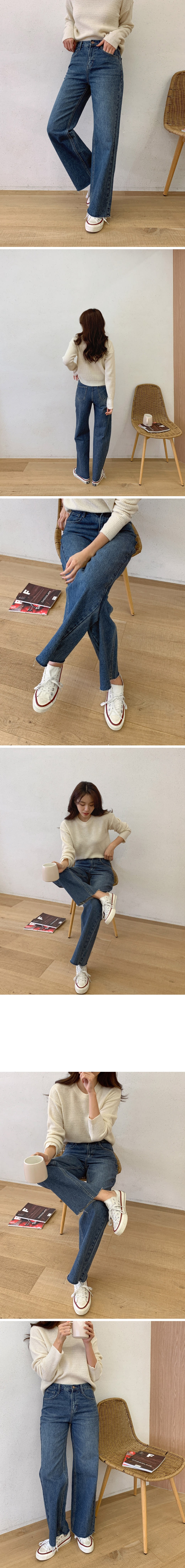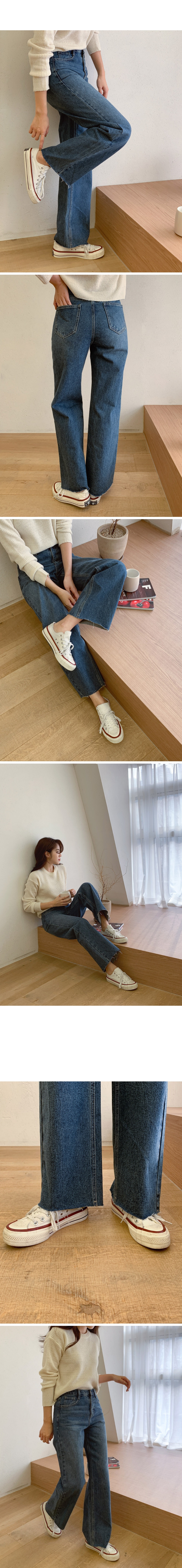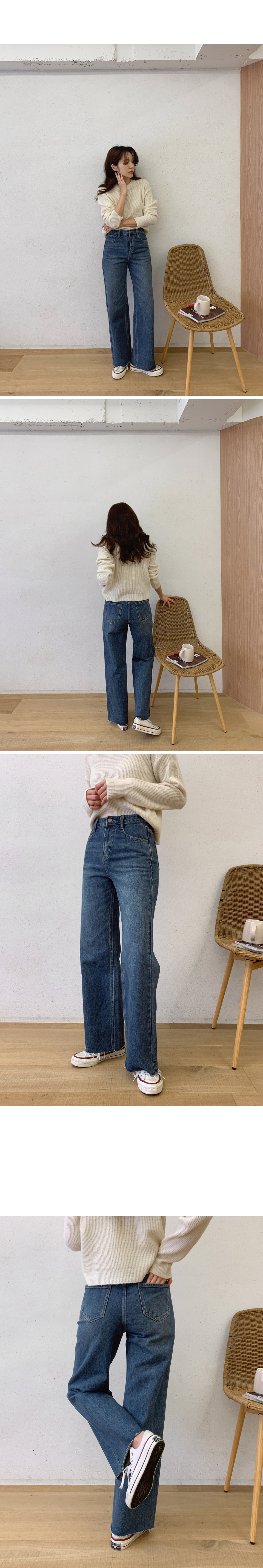 워싱 컷팅 와이드팬츠 빈티지 데님 일자 청바지