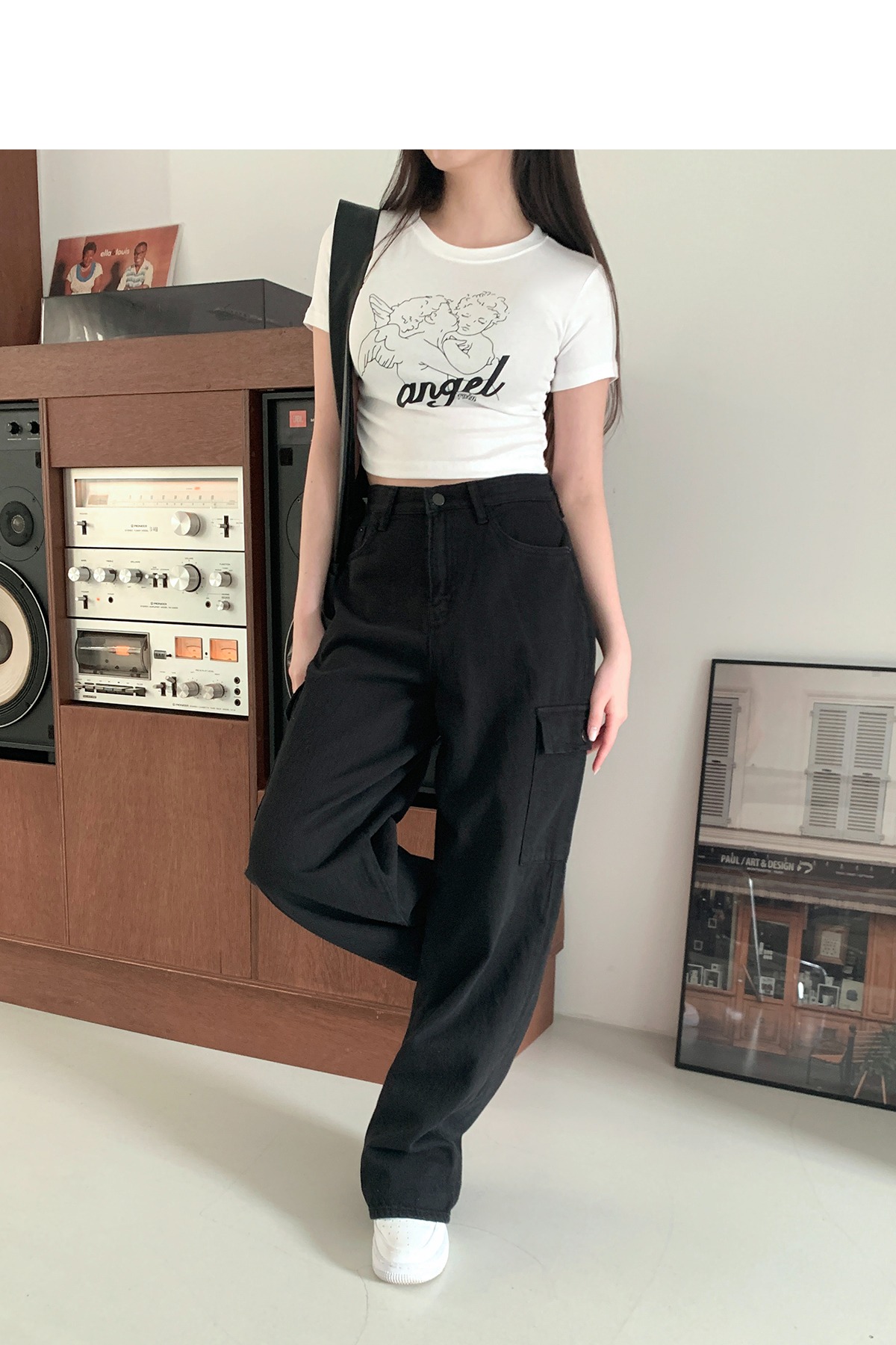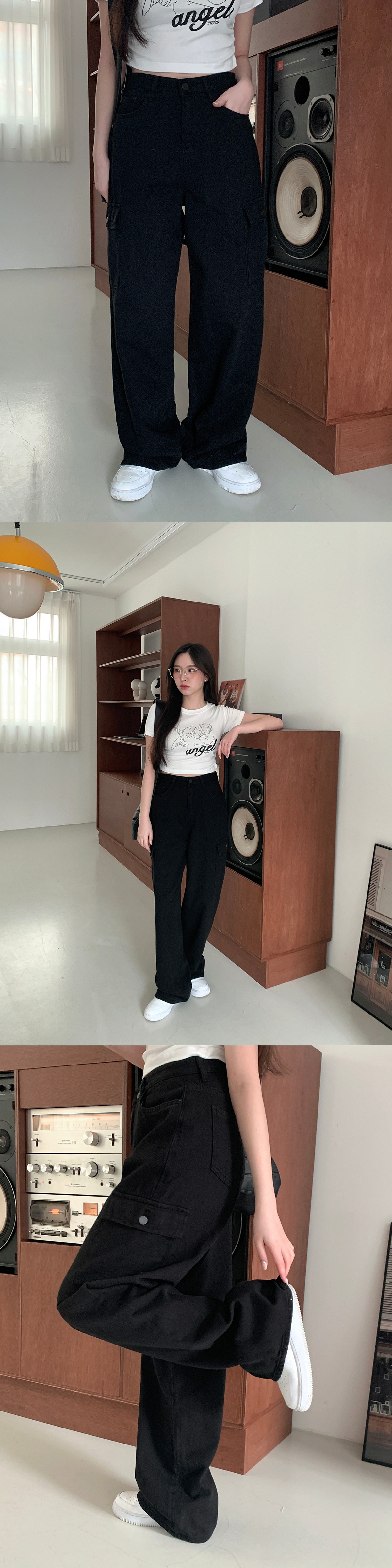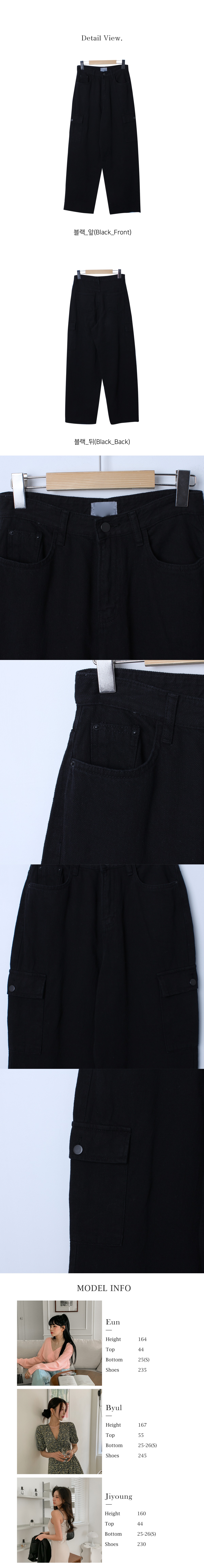여성 봄여름 포켓 와이드 블랙 면 바지 팬츠