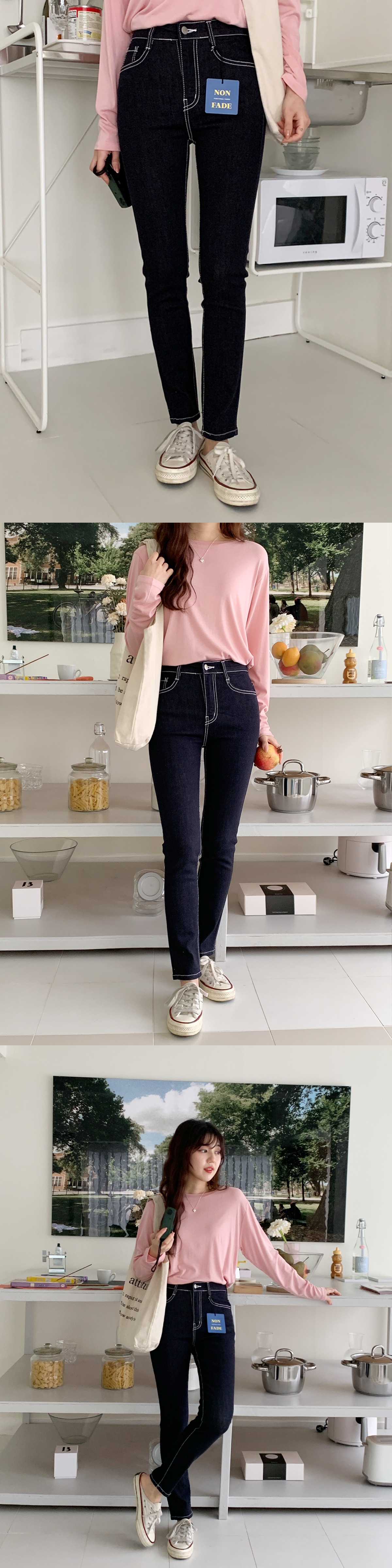 스티치 슬림 스키니 데님 면 봄여름 여성 청바지 팬츠