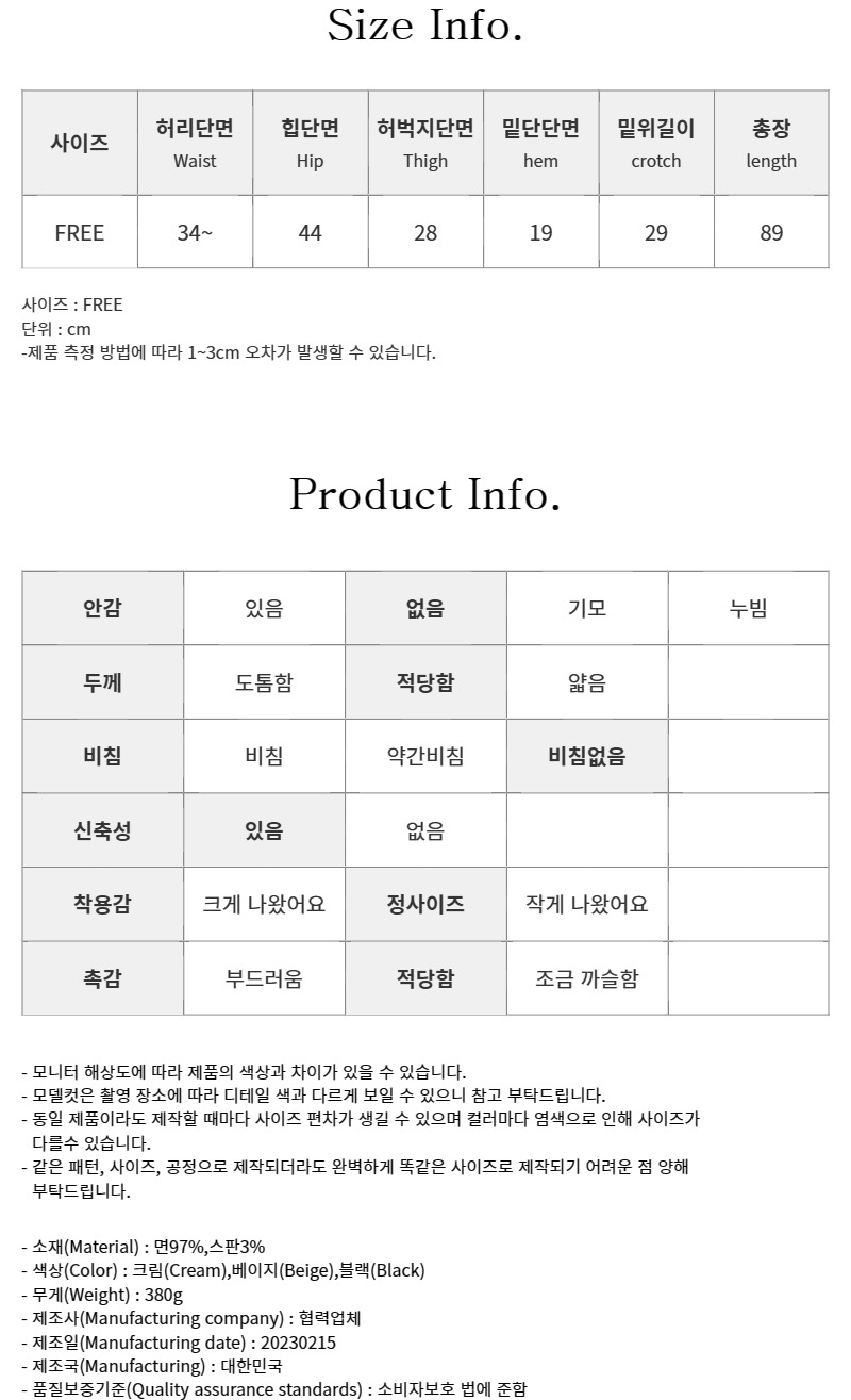 크림, 베이지 / Free 사이즈 착용했습니다^^