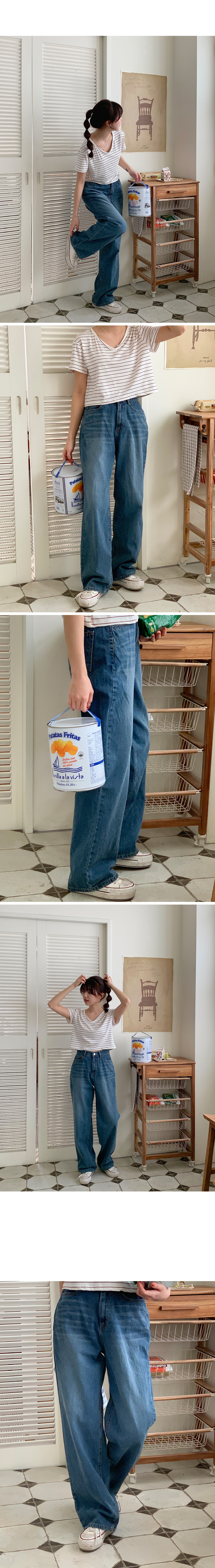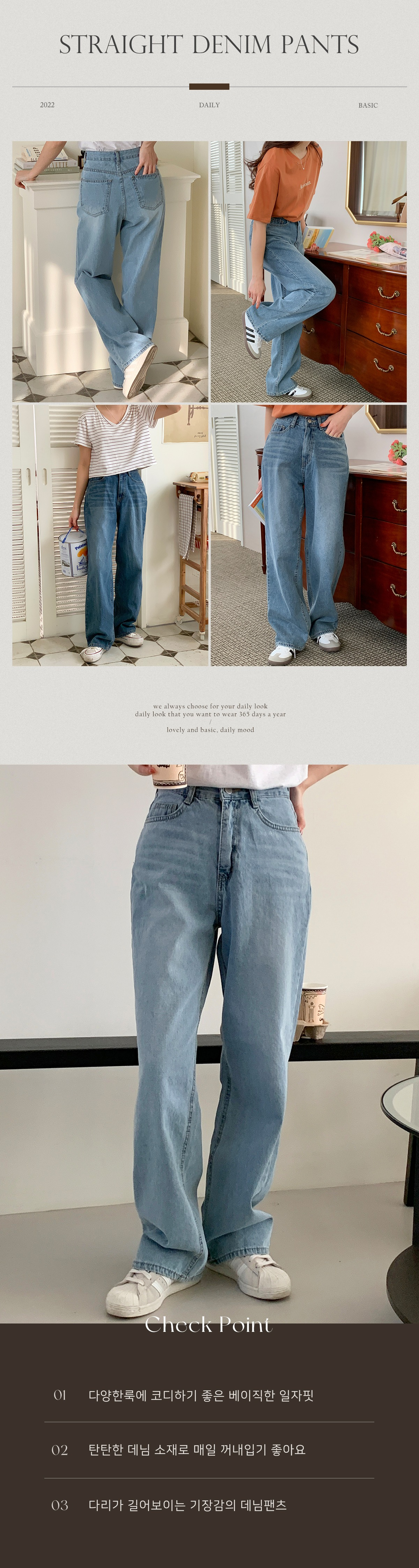 봄여름 여성 일자 와이드 데님 워싱 면 팬츠 바지