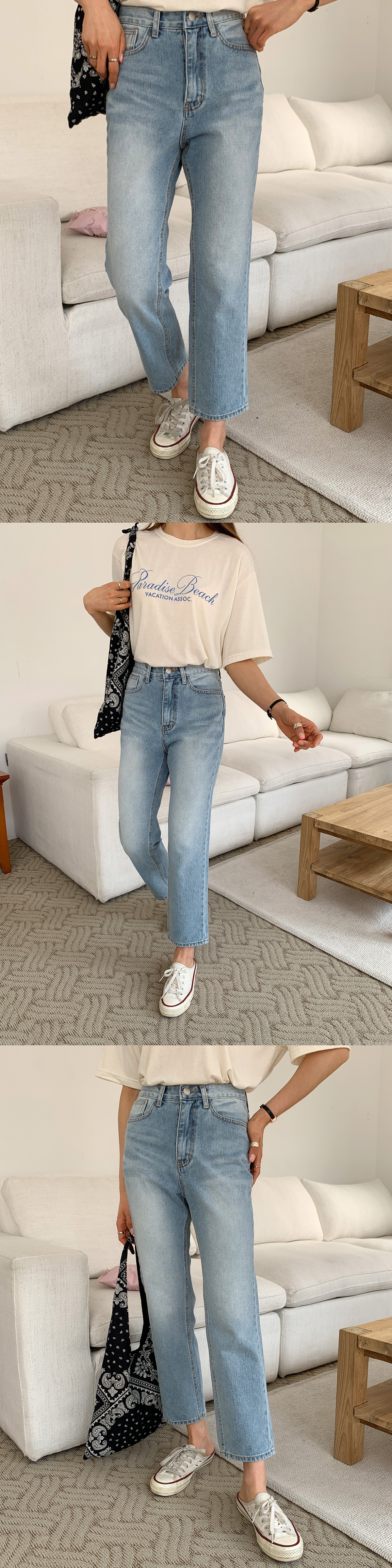 베이직 스트레이트 일자핏 워싱 데님 면 여성 청바지 팬츠