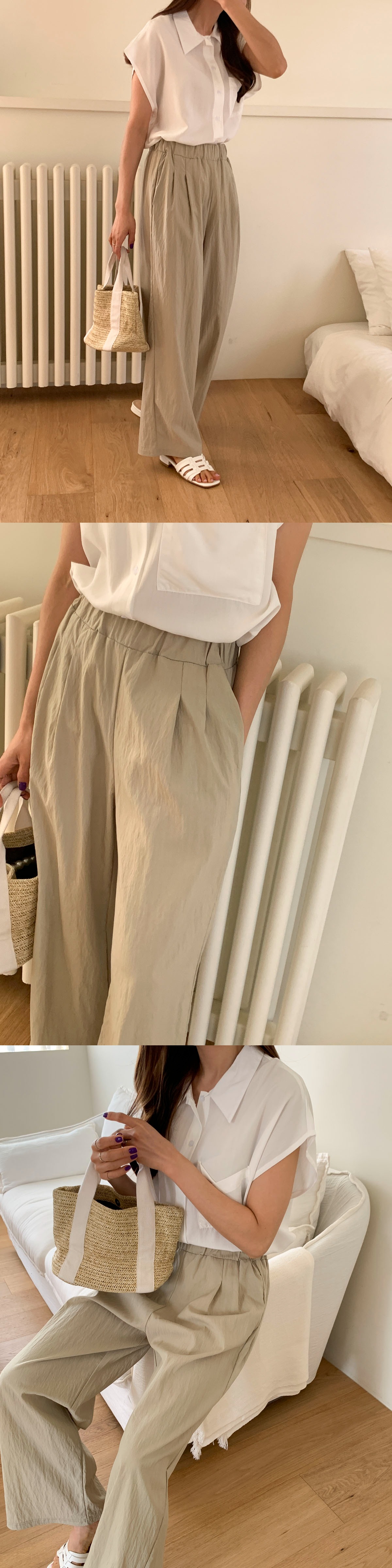 여성 무지 일자핏 베이직 밴딩 시원한 통바지 팬츠