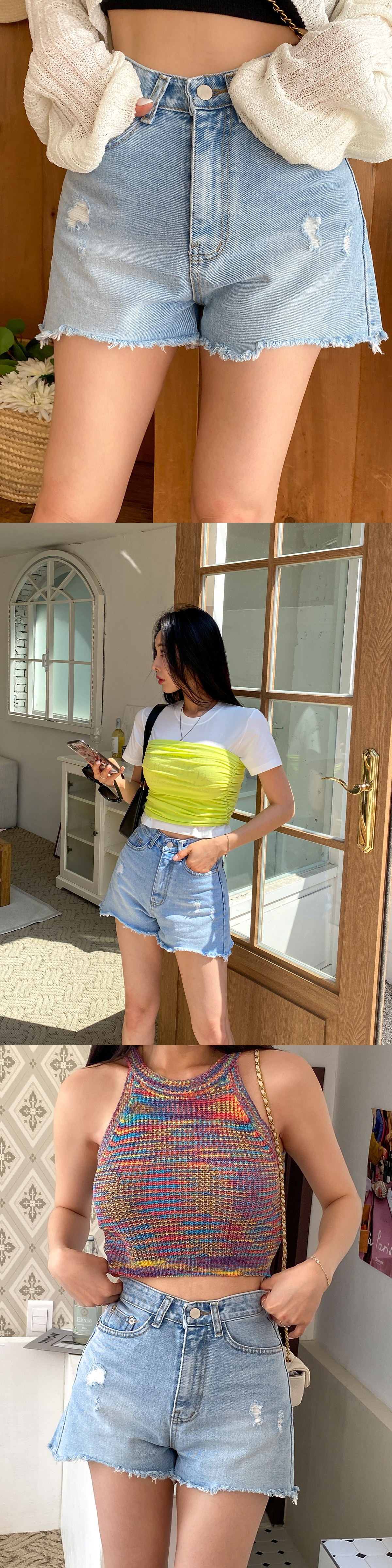 데미지 컷팅 숏 3부 캐주얼 여성 여름 데님 팬츠 청바지