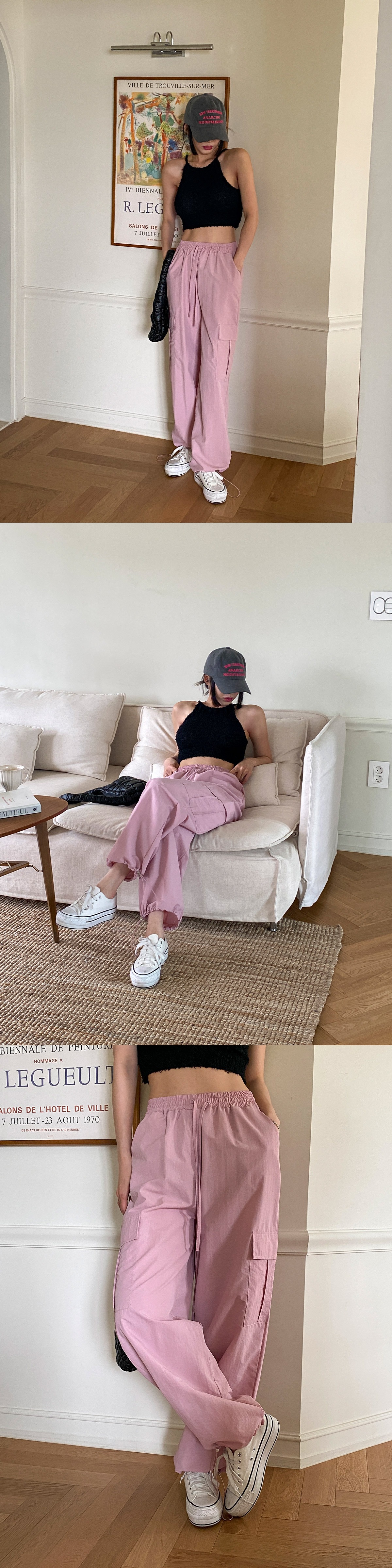 와이드핏 포켓 스트링 롱 팬츠입니다